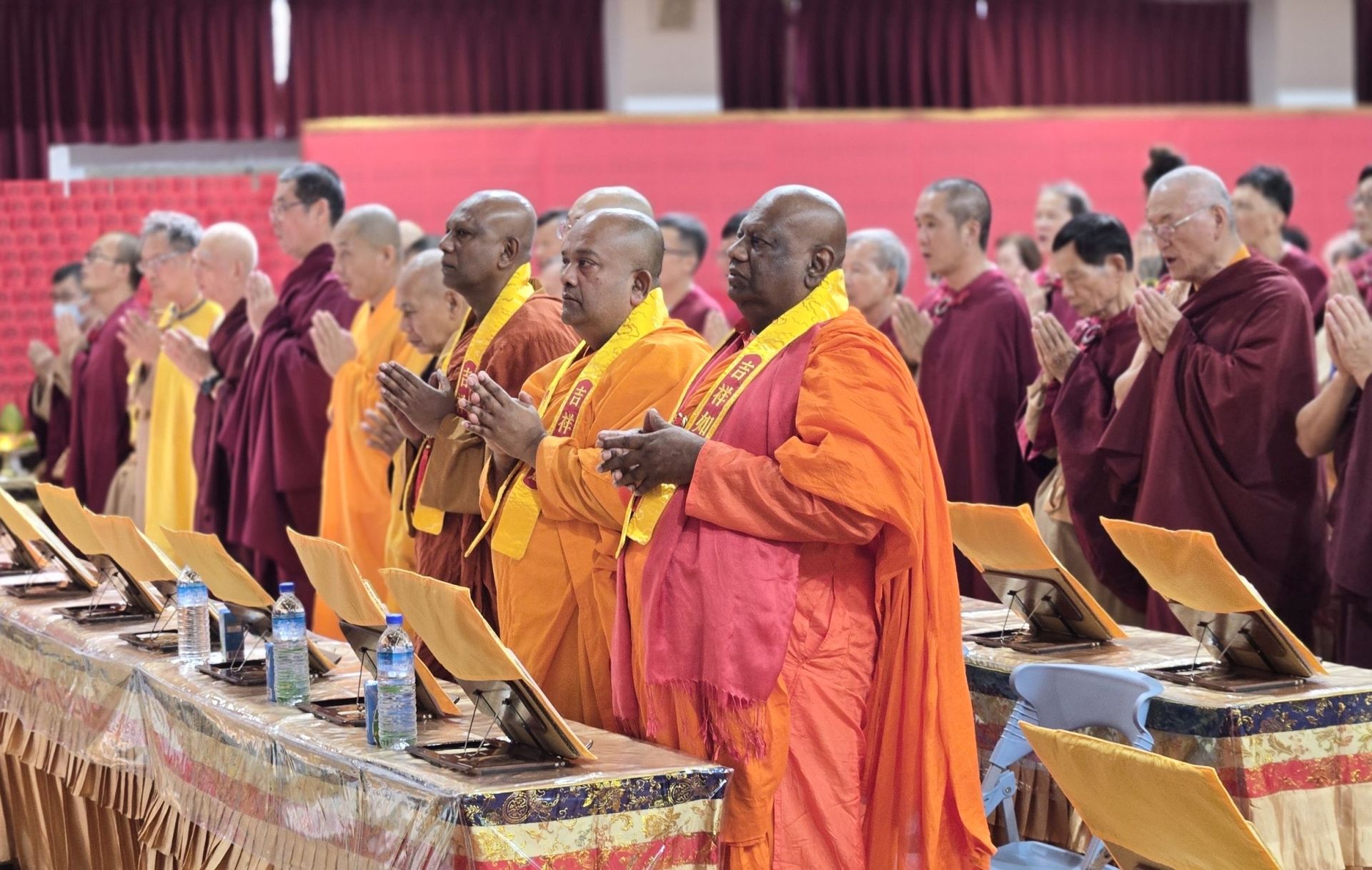 值得一提的是,斯里蘭卡三乘教法兼備的龍喜國際佛教大學的創辦人強帝瑪法師,曾於20年前拜見南無羌佛並親為受教,20日亦率團來台參加法會。宗教科長李賢正,孝親偕同95歲的爸爸一起誦經,祈願消災延壽,身體健康。