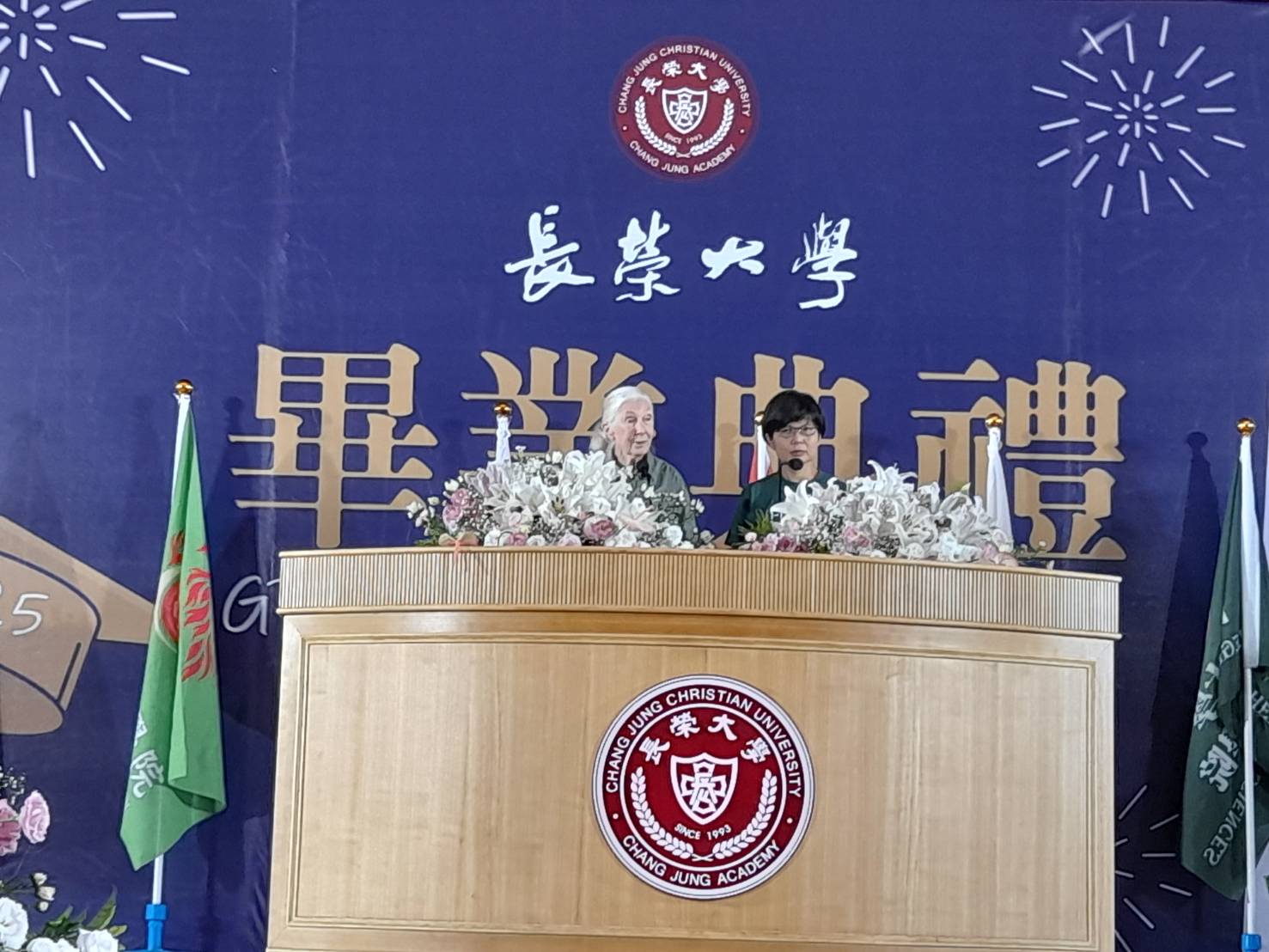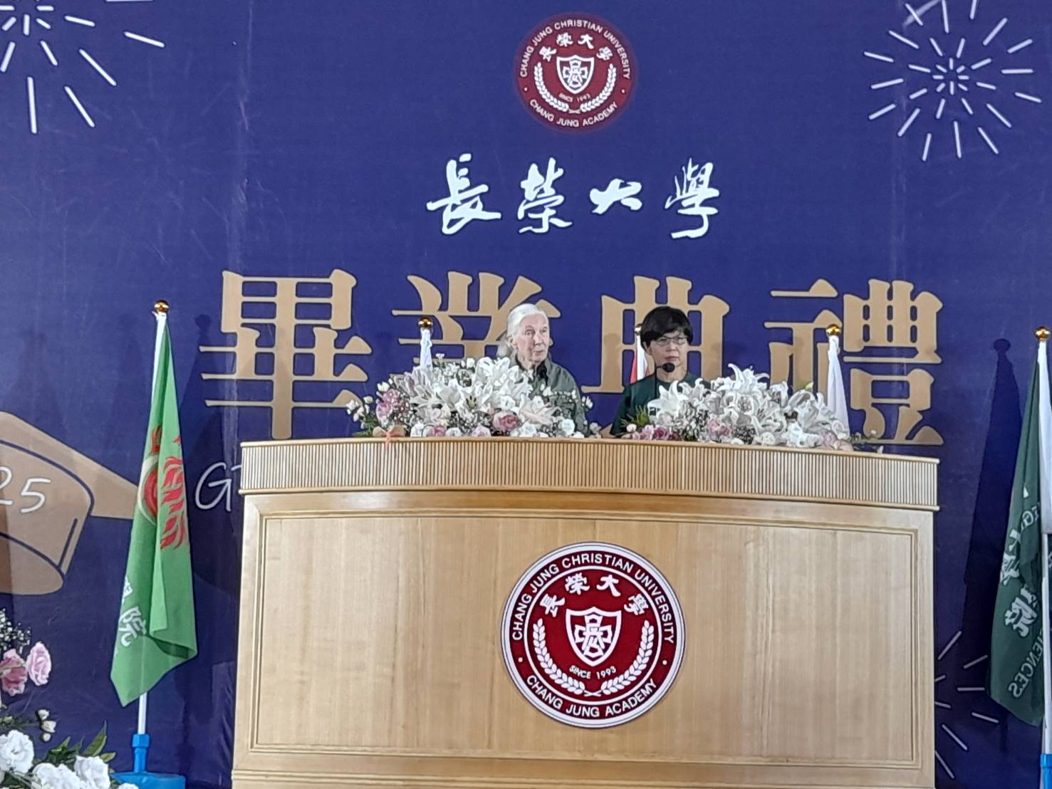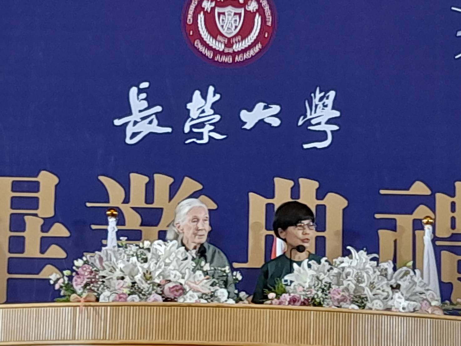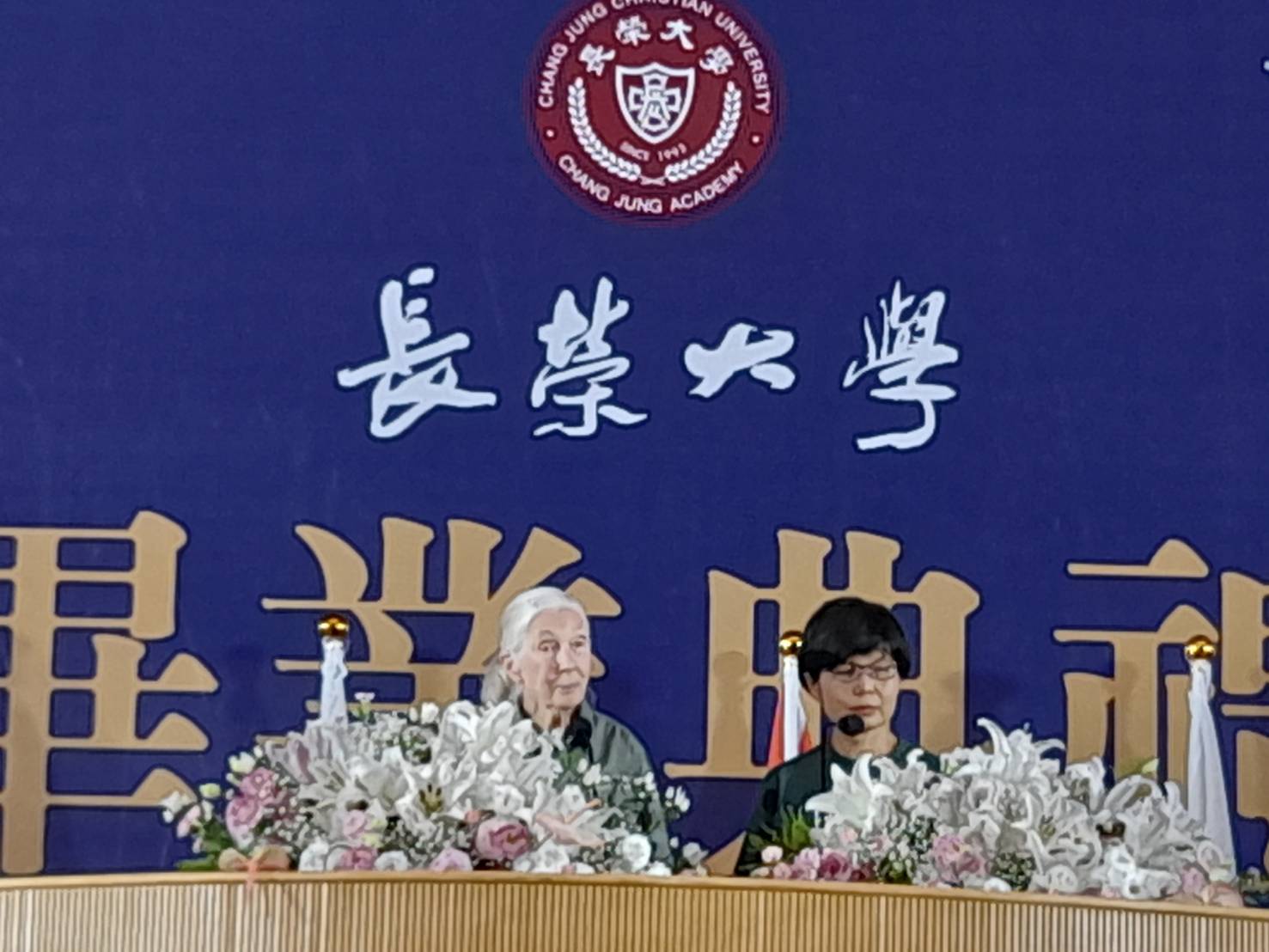 國際珍古德教育及保育協會創辦人、聯合國和平大使珍古德博士(Dr. Jane Goodall)於西元2025年6月最後一次訪台,特別出席長榮大學畢業典禮。
