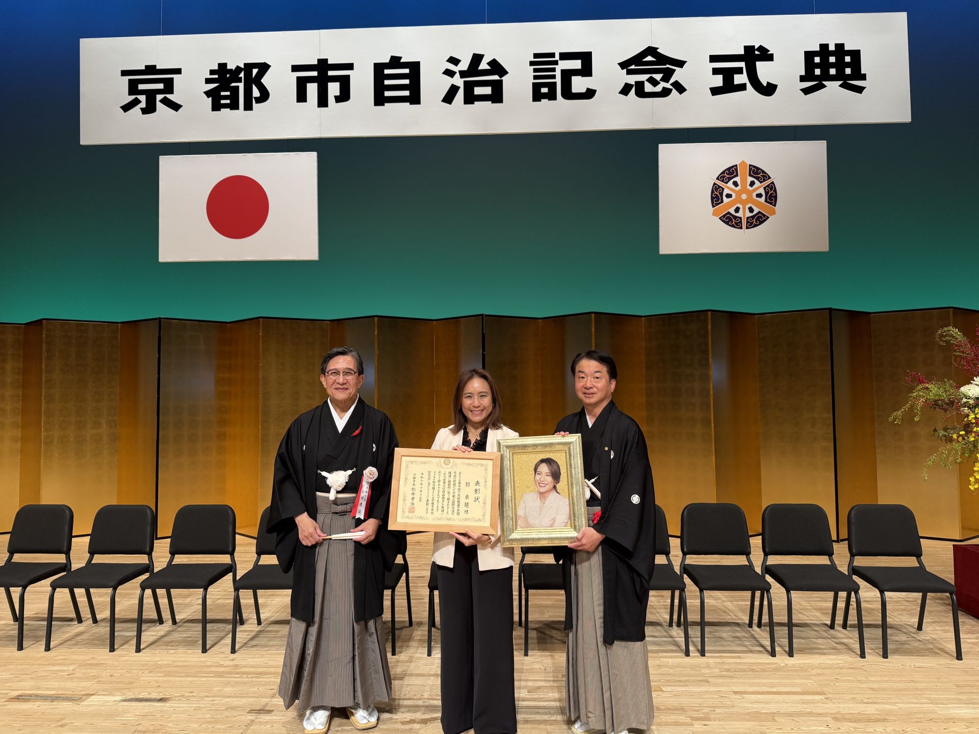 今日10/15獲京都市表揚「國際交流推進特別表彰」,以感謝其多年來推動台灣台南與日本京都友好交流的傑出貢獻。