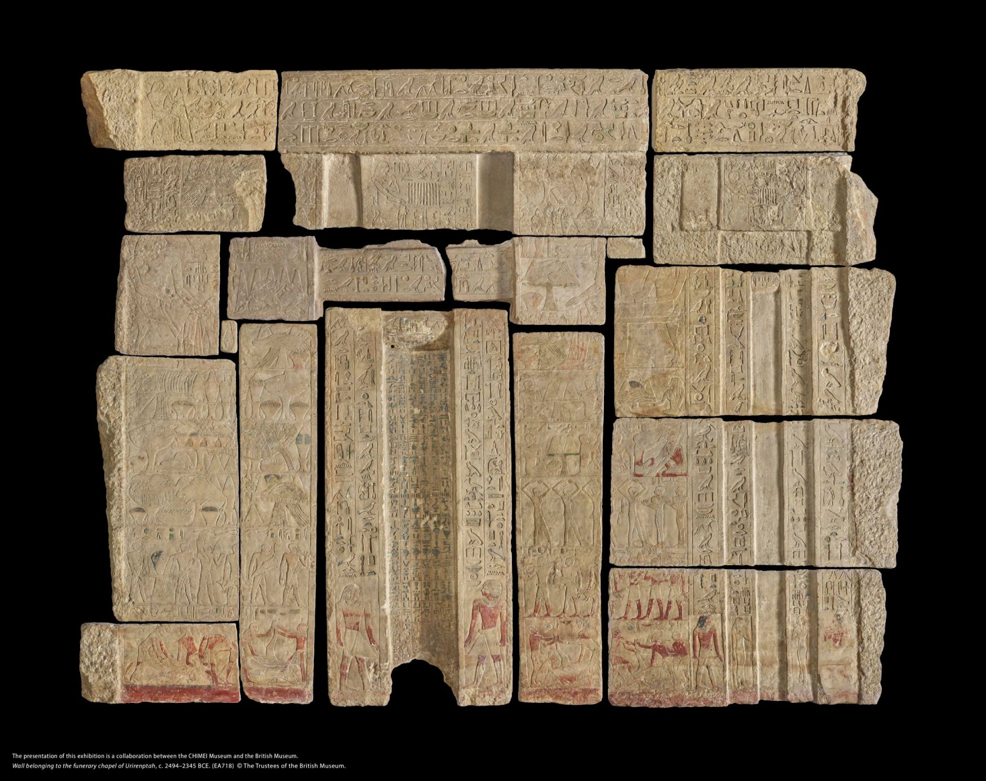另有戰爭女神「塞赫麥特」的6尊獅首神像,營造如臨神廟的莊嚴氛圍。高近2.5公尺、寬逾3公尺的大型墓室浮雕,刻劃祭祀場景與豐盛供品,是了解古埃及對死後世界想像的重要依據。