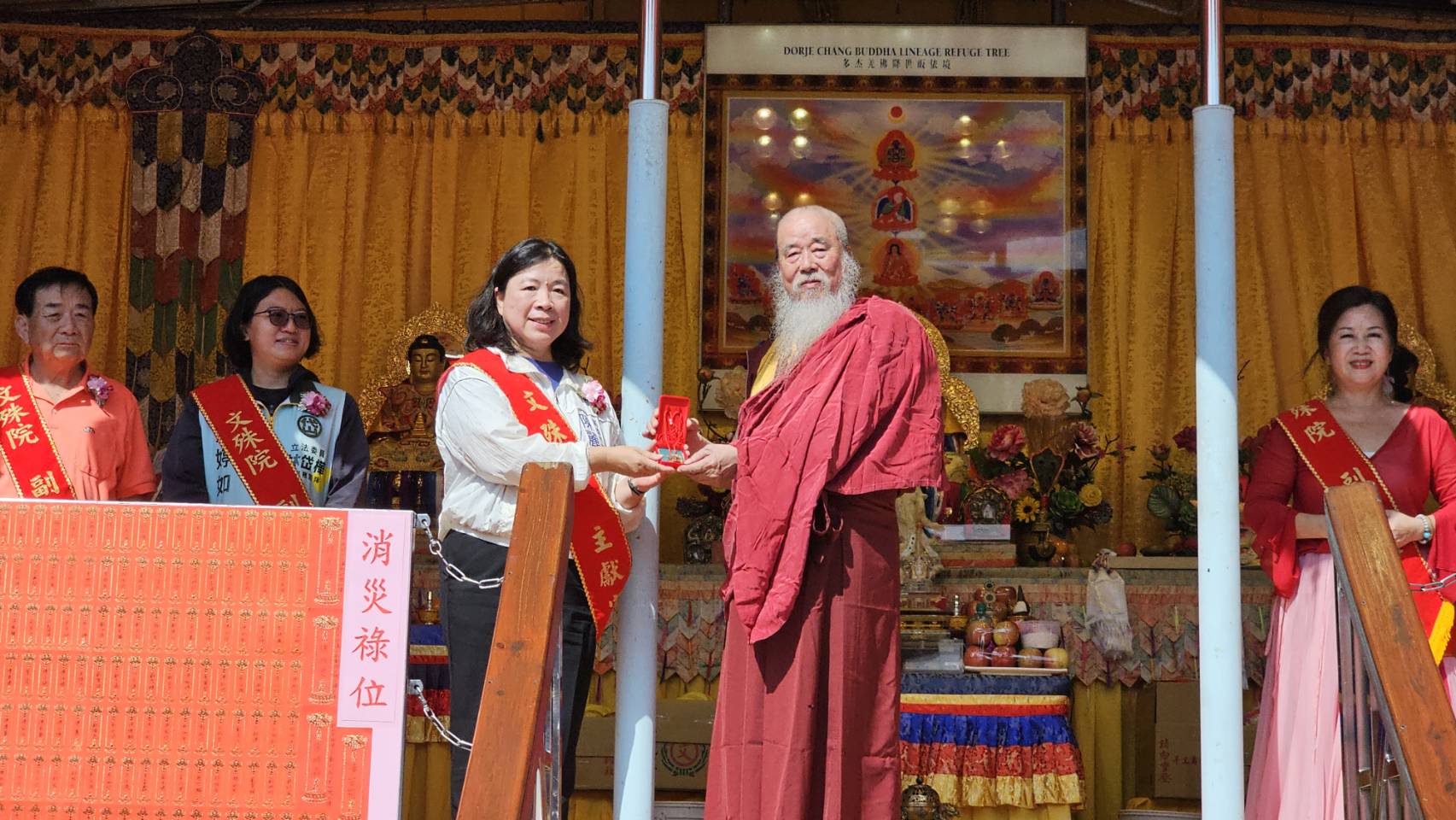 陳麗珍議員表示,非常開心正心會再度來到高雄舉辦法會,祝福現場所有信眾幸福快樂!其他貴賓也祝福法會順利成功!