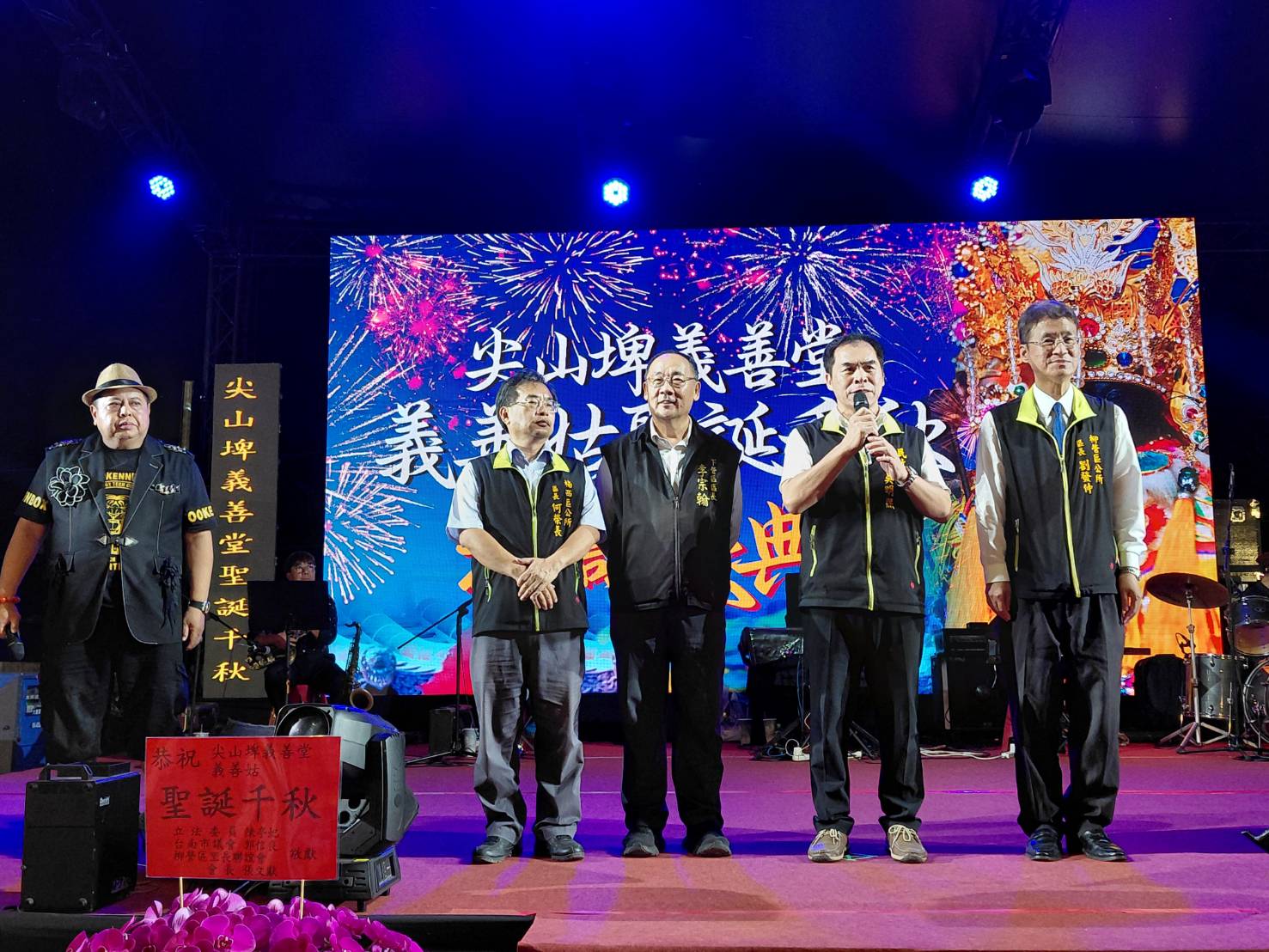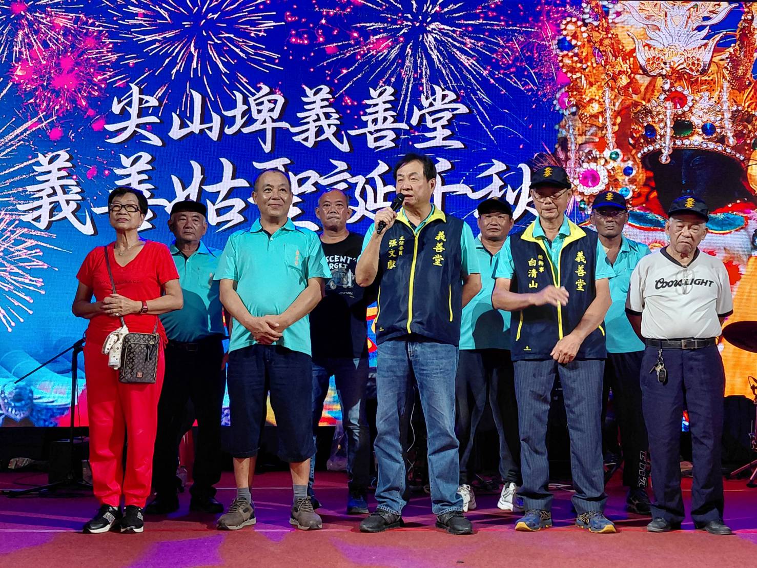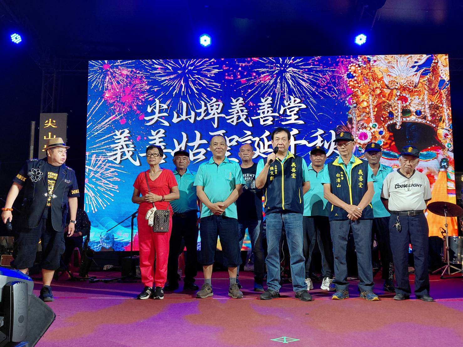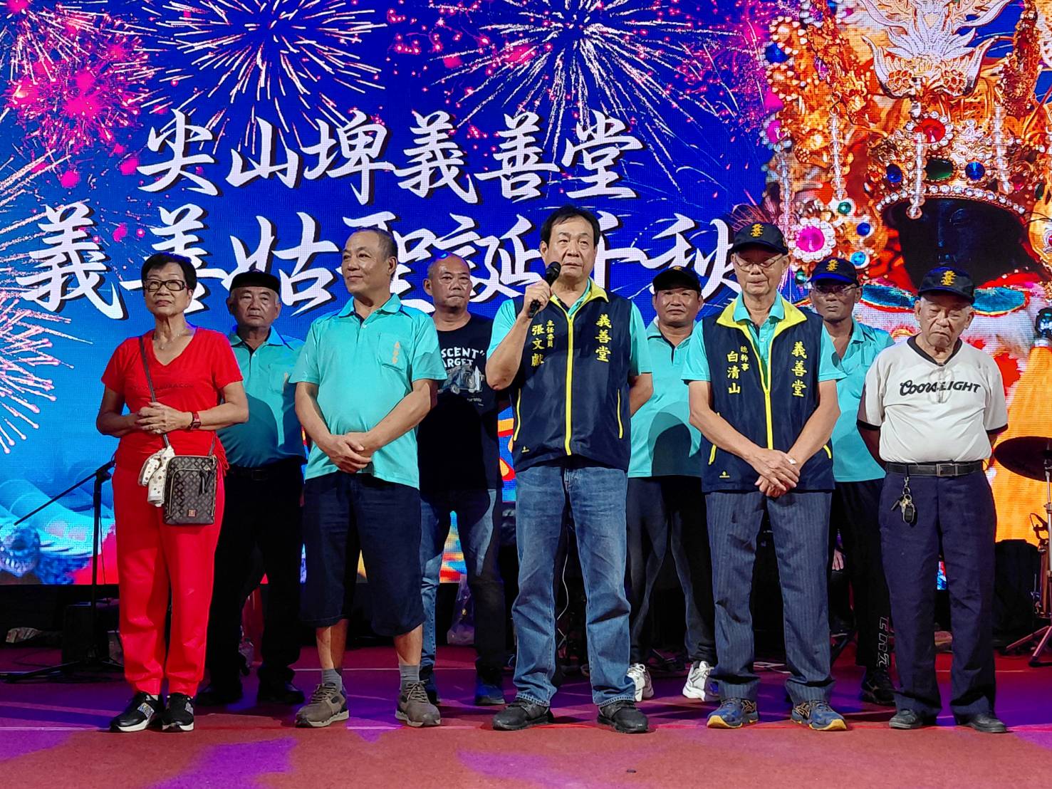 114年11月8日七時四十分,廚壓軸戲登場,在對岸尖山埤水庫堤岸,施放畫破天際的百萬煙火秀,流星般的煙火,將義善姑廟廣場,點綴的宛如白晝般,打破歷年來,新紀錄!