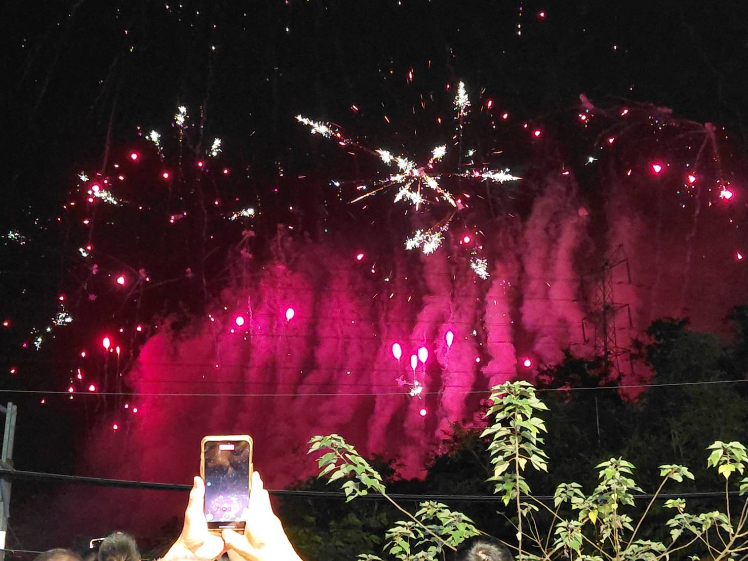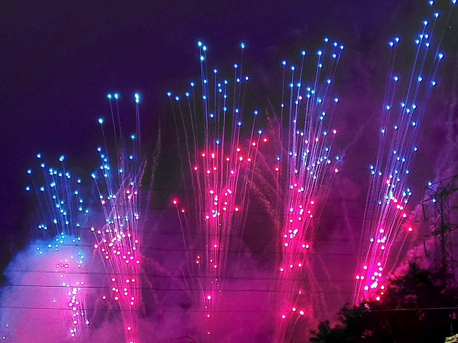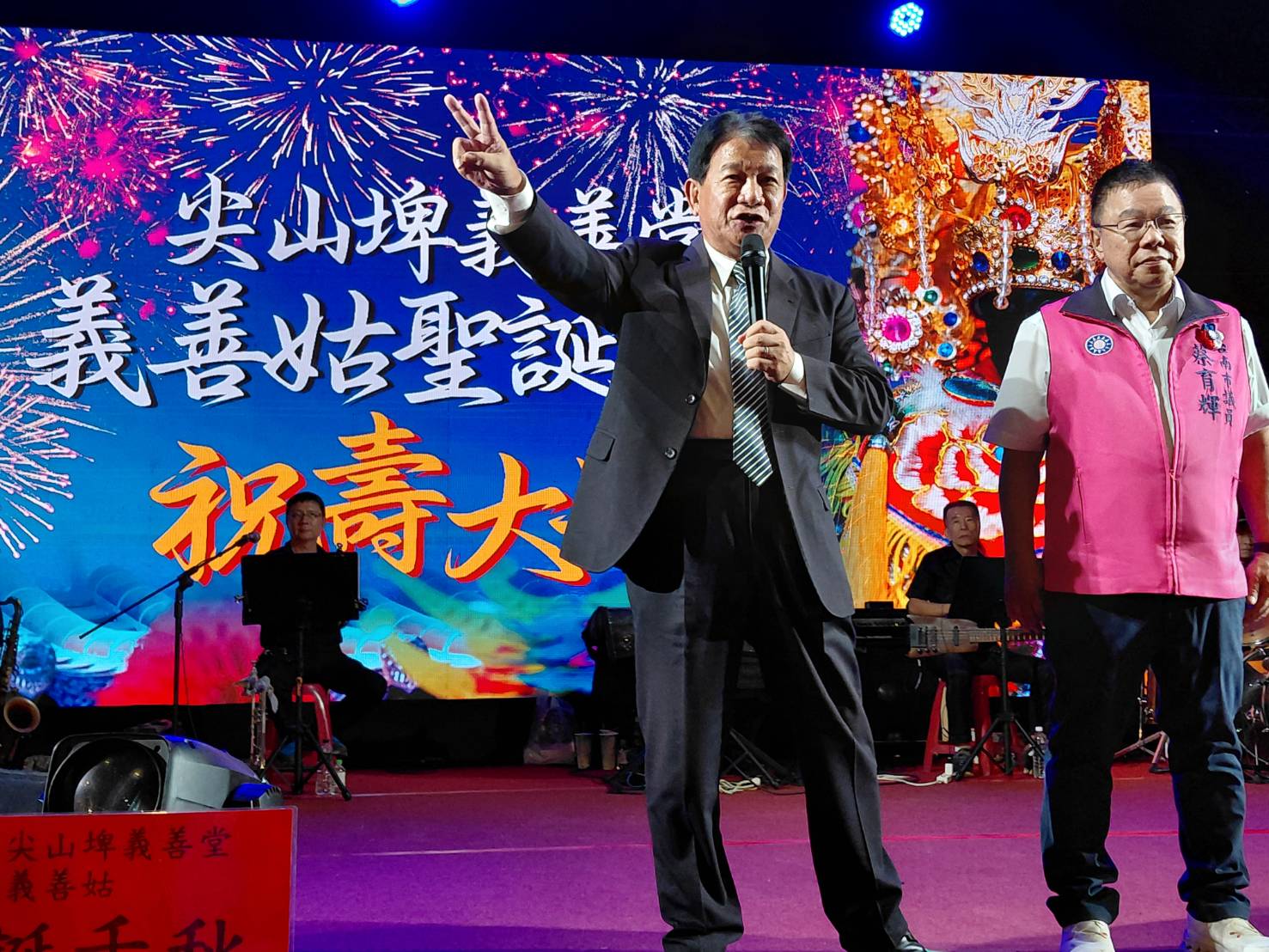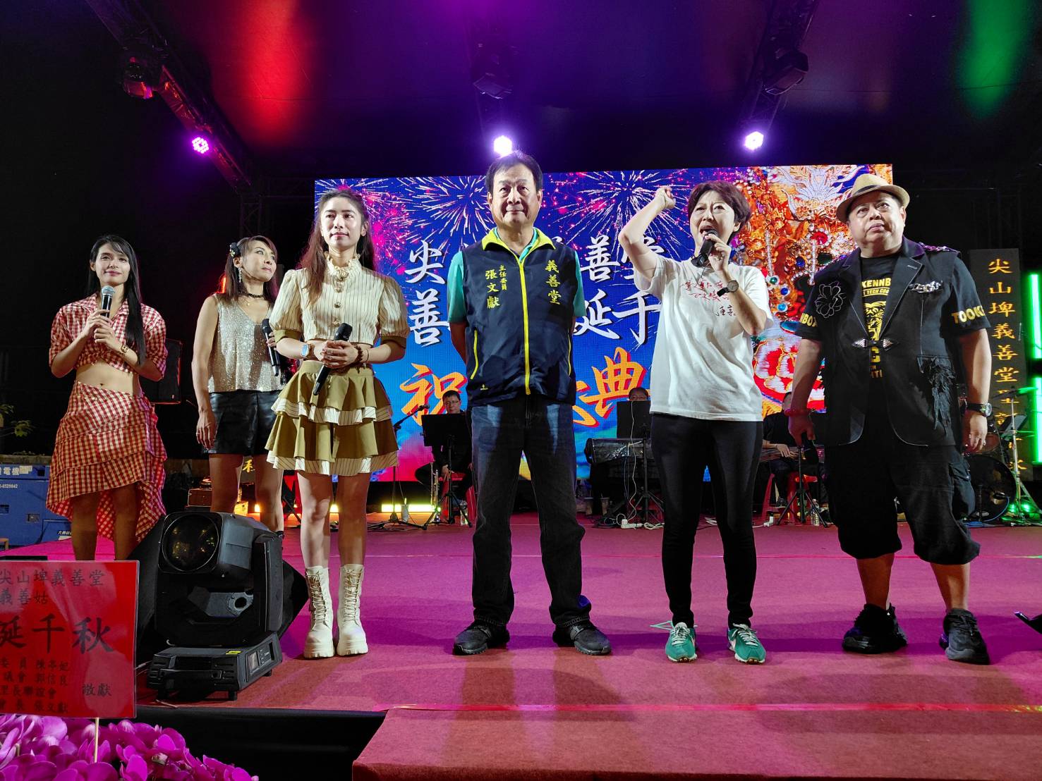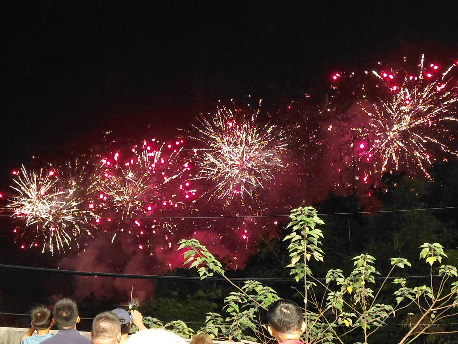 114年11月8日七時四十分,廚壓軸戲登場,在對岸尖山埤水庫堤岸,施放畫破天際的百萬煙火秀,流星般的煙火,將義善姑廟廣場,點綴的宛如白晝般,打破歷年來,新紀錄!