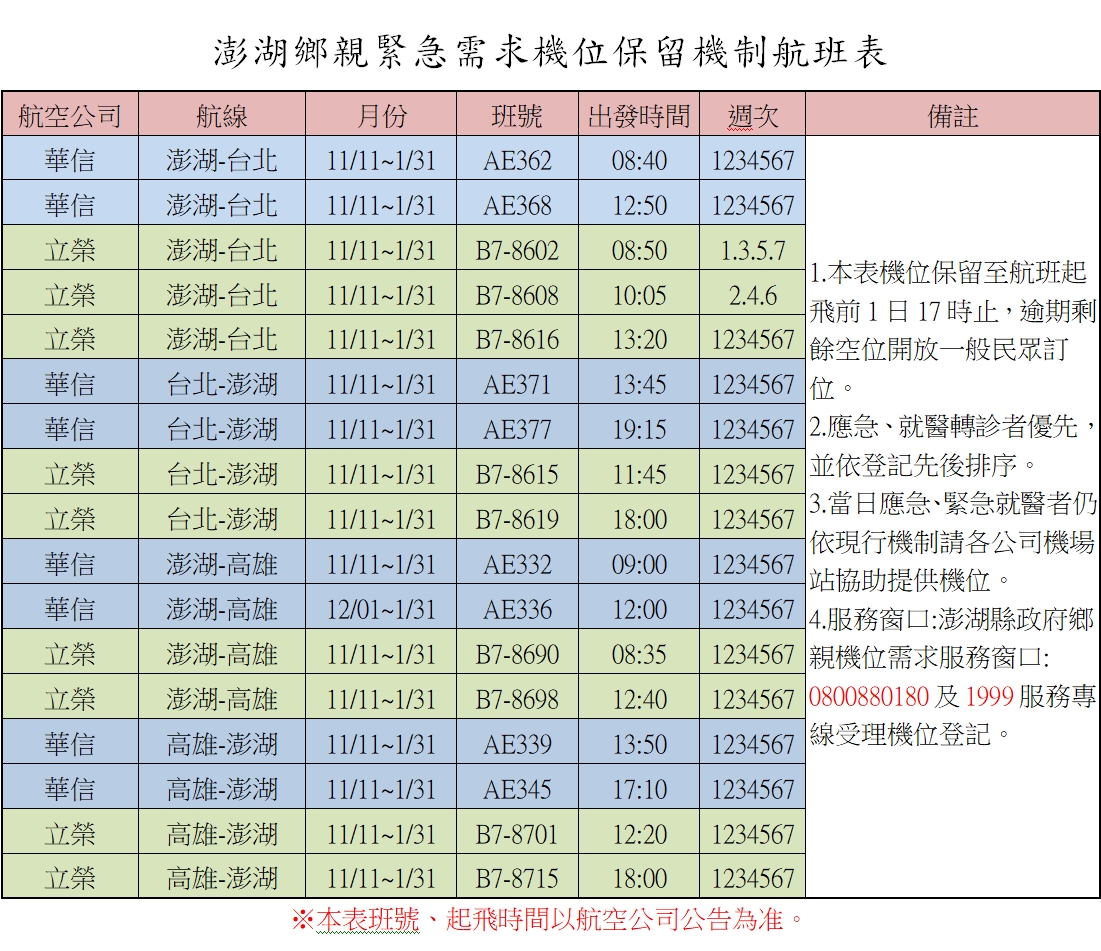 (記者五毛澎湖報導)澎湖鄉親緊急需求機位保留機制啟動!