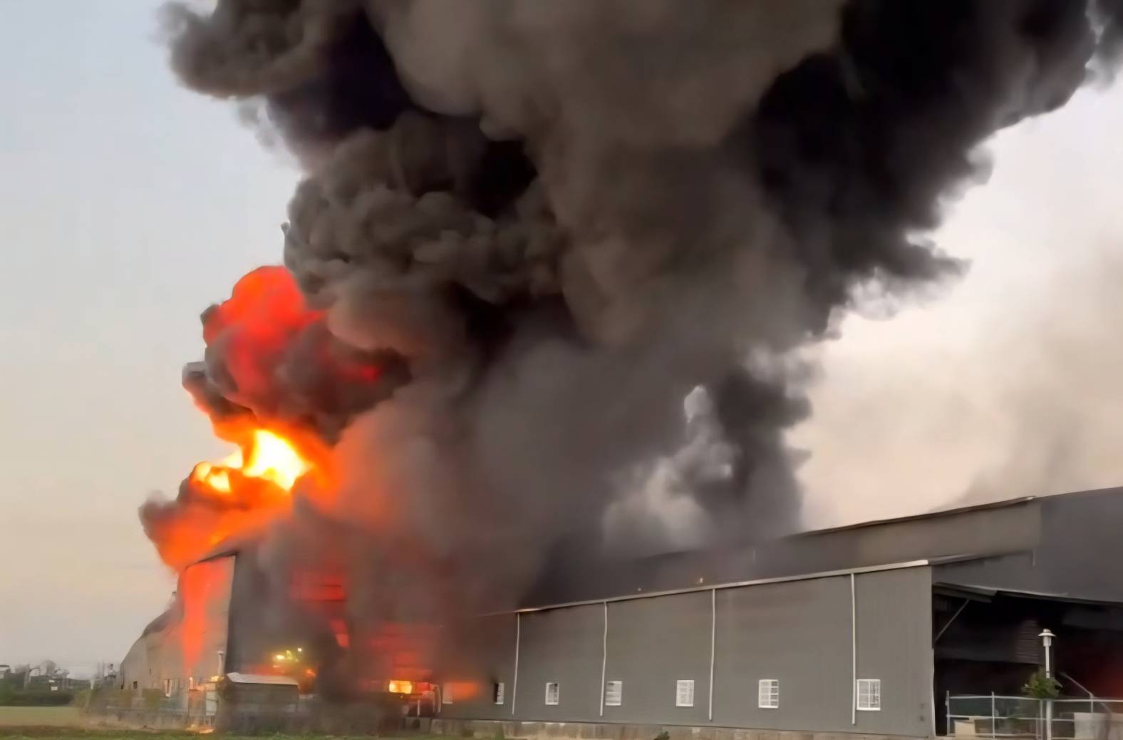 台南安定區鐵皮工廠大火,陷火海,火舌、濃煙直竄天際,火勢延燒300坪!