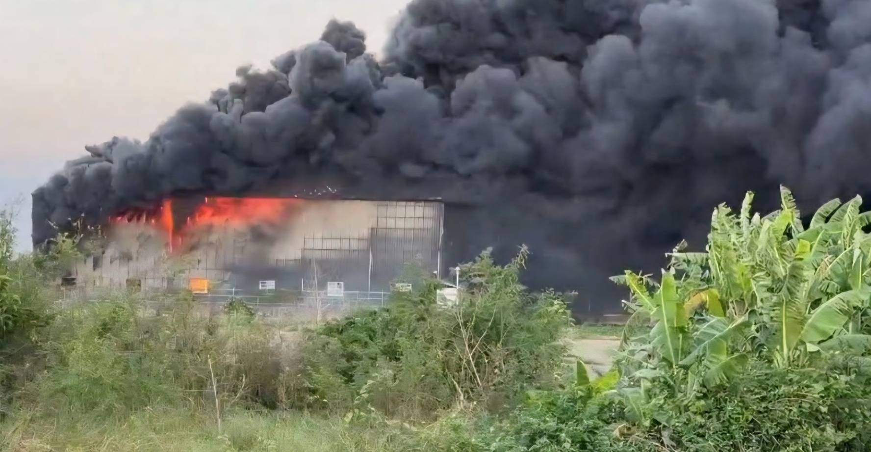 台南安定區中榮里鐵皮工廠驚傳爆發大火,陷入一片火海之中,台南、高雄27區,空氣品質,拉警報!