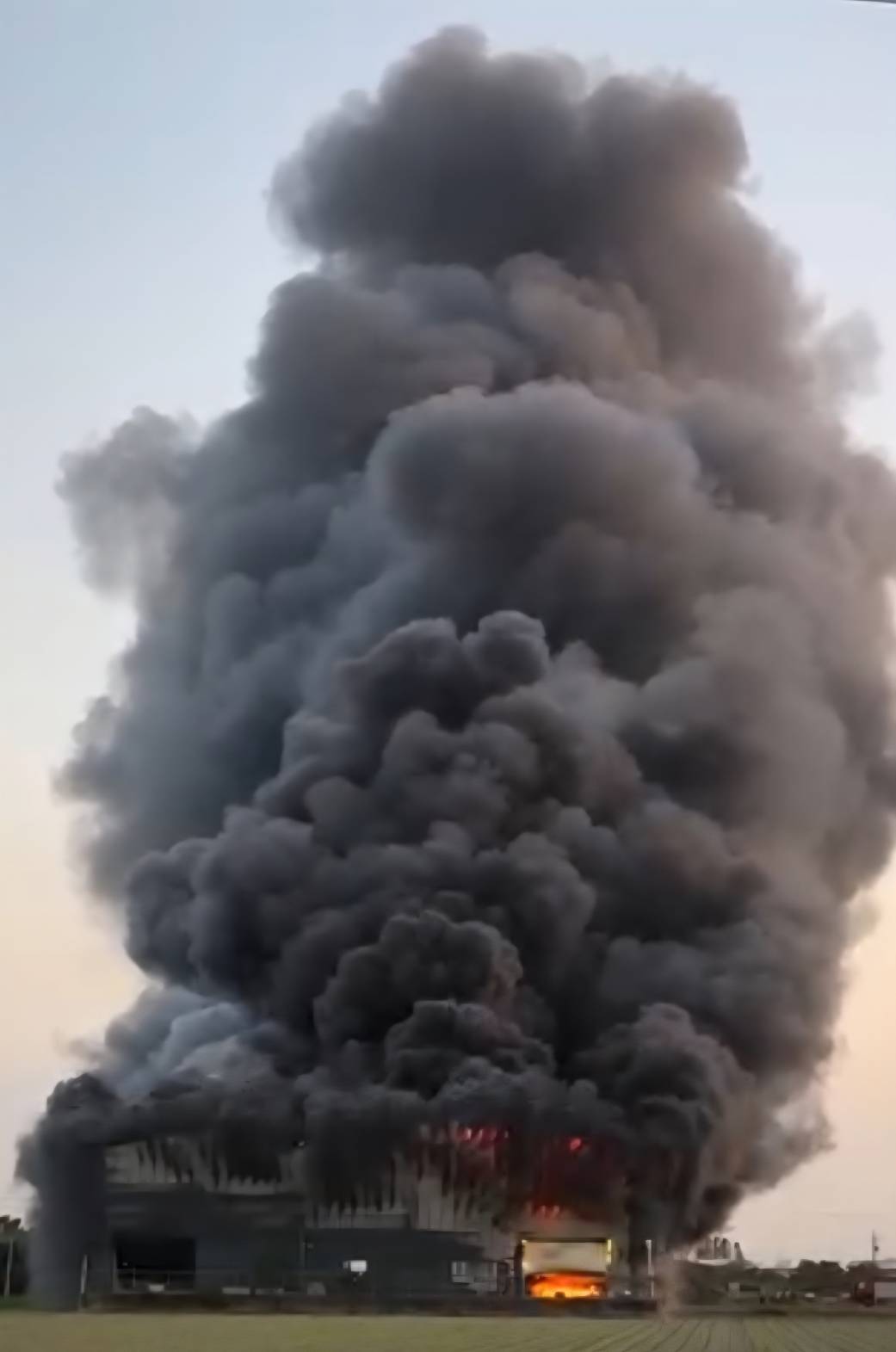 台南安定區中榮里鐵皮工廠驚傳爆發大火,滾滾巨大濃煙駭人!