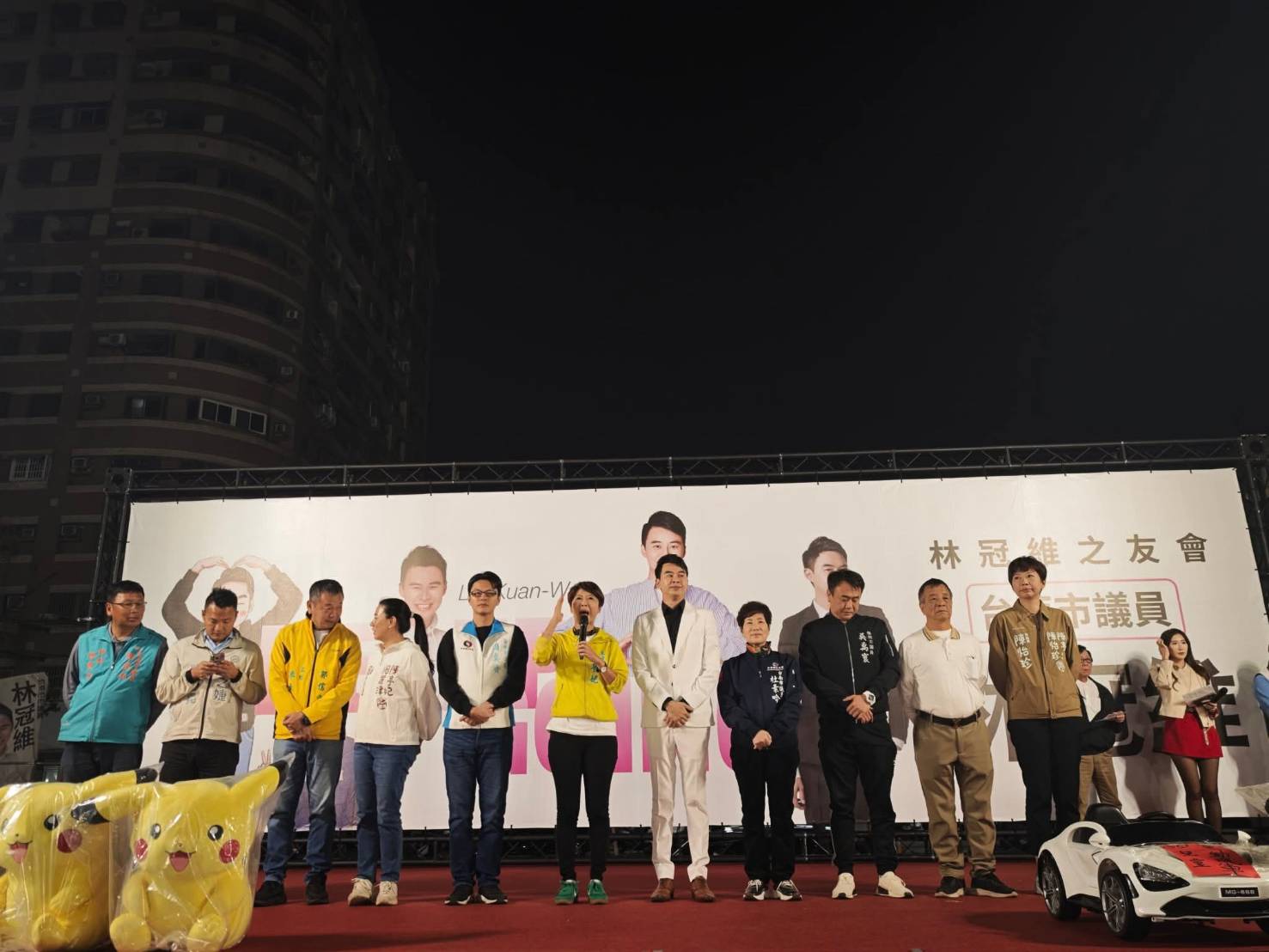 台南市議會無黨團結聯盟總召杜素吟更率多名議員相挺,展現林冠維豐沛的政治人和,及服務團隊關懷社會弱勢的龐大奧援。