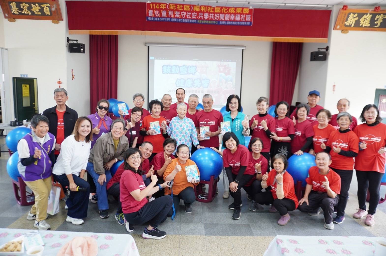 活動中,居民以抗力球打擊帶來熱情迎賓,成大高年級實習生志工則示範輕快律動,搭配營養師「用鹽文化」的健康飲食推廣,並由林美蘭理事長帶領大家走讀散步體驗。