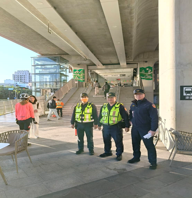 在交通安全方面,臺中市政府警察局第五分局特別針對雙鐵共構之重要交通節點松竹站,加派警力駐守與巡邏,並結合周邊路線實施動線巡查,防制突發狀況發生;同時針對捷運、公車轉乘動線及人潮聚集處,強化即時應變能力,確保通勤秩序順暢與旅客人身安全。