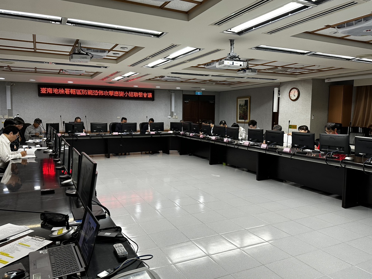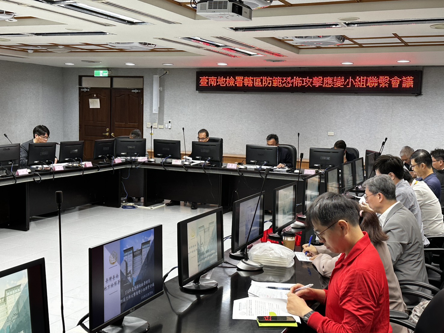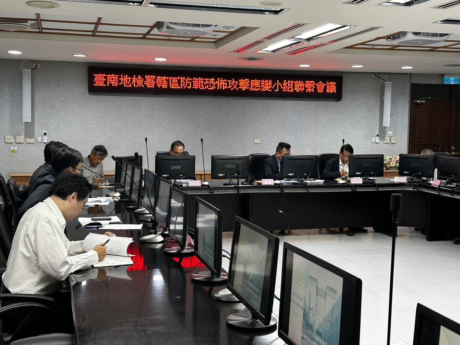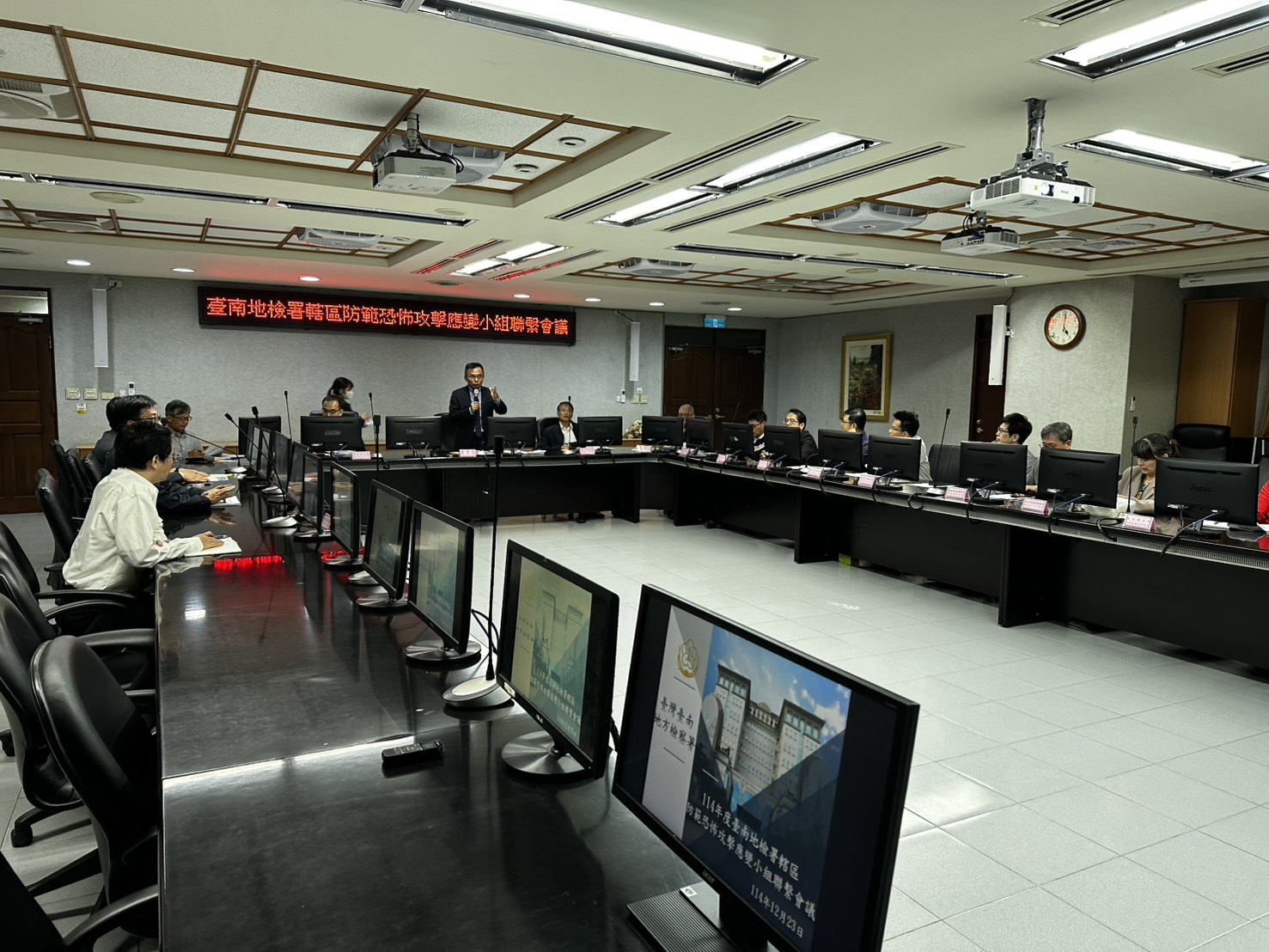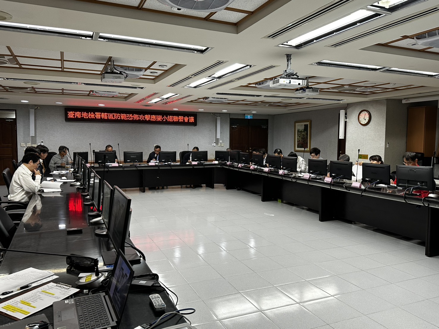 臺南地檢署鍾和憲檢察長於昨(23)日,於臺南地檢署第一會議室,召集轄內檢警調廉及政風等小組成員,親自主持防範恐怖攻擊應變小組聯繫會議,加強情資蒐報與風險評估之合作討論,藉以即時啟動應變與強制作為,藉以遏止恐嚇、模仿或散布恐懼情形的擴散。.jpg)