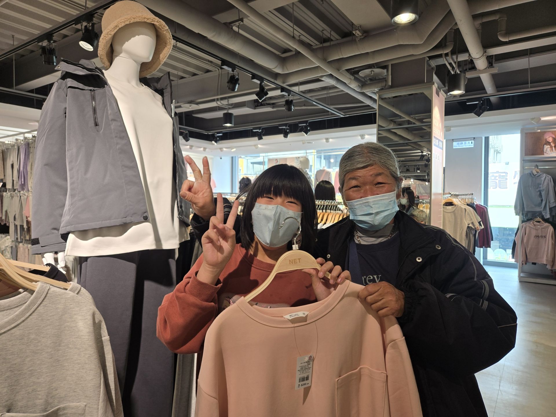 父母離異的小諠就讀高二,父親因不負家庭責任由年邁體弱的祖父母撫養,經常身兼母職照料國小的弟妹,已經有好幾年沒能買新衣服了,本次獲得NET資源,很開心能為自己和弟弟妹妺各買了一件外套,減輕家人的負擔外,自己也開心穿上喜歡的衣服過新年。