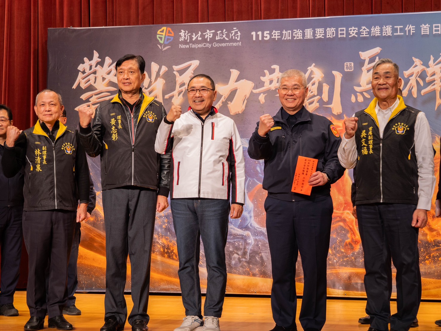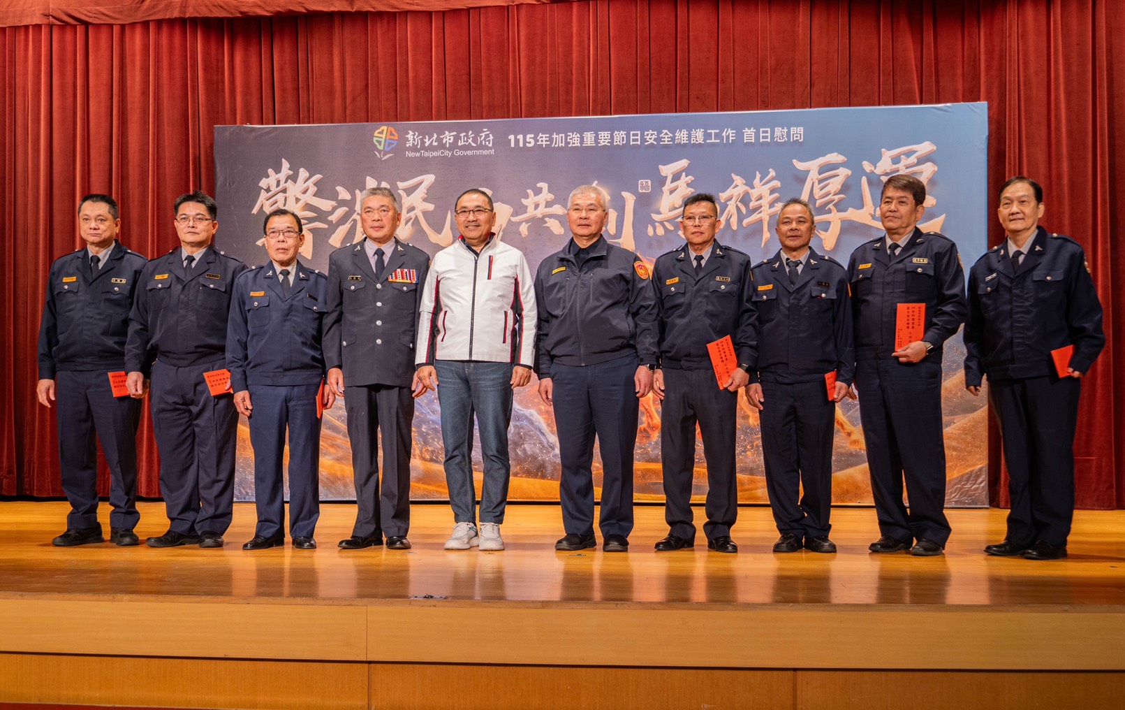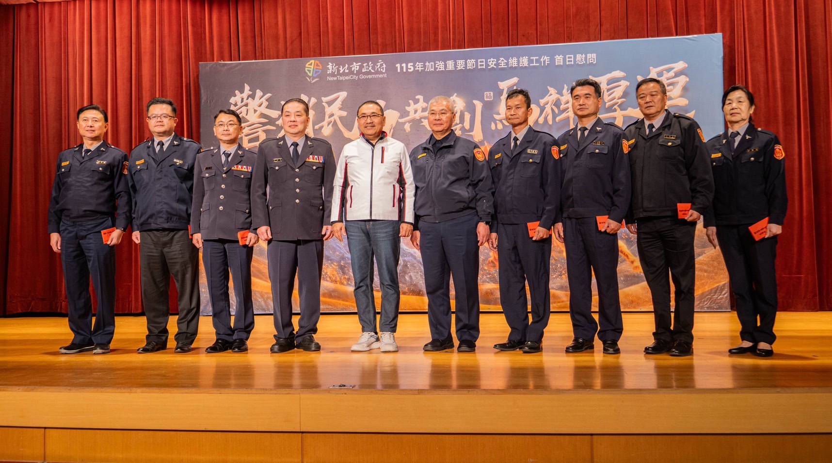 啟動當晚,市長侯友宜與副市長朱惕之在市府6樓大禮堂慰勉第一線同仁,邀集警察局、消防局、憲兵隊、義警、民防、義交、志工、義消、防宣及救護等夥伴,發放加菜金並致贈慰問品,感謝大家在年節期間堅守崗位、守護城市。.jpg)