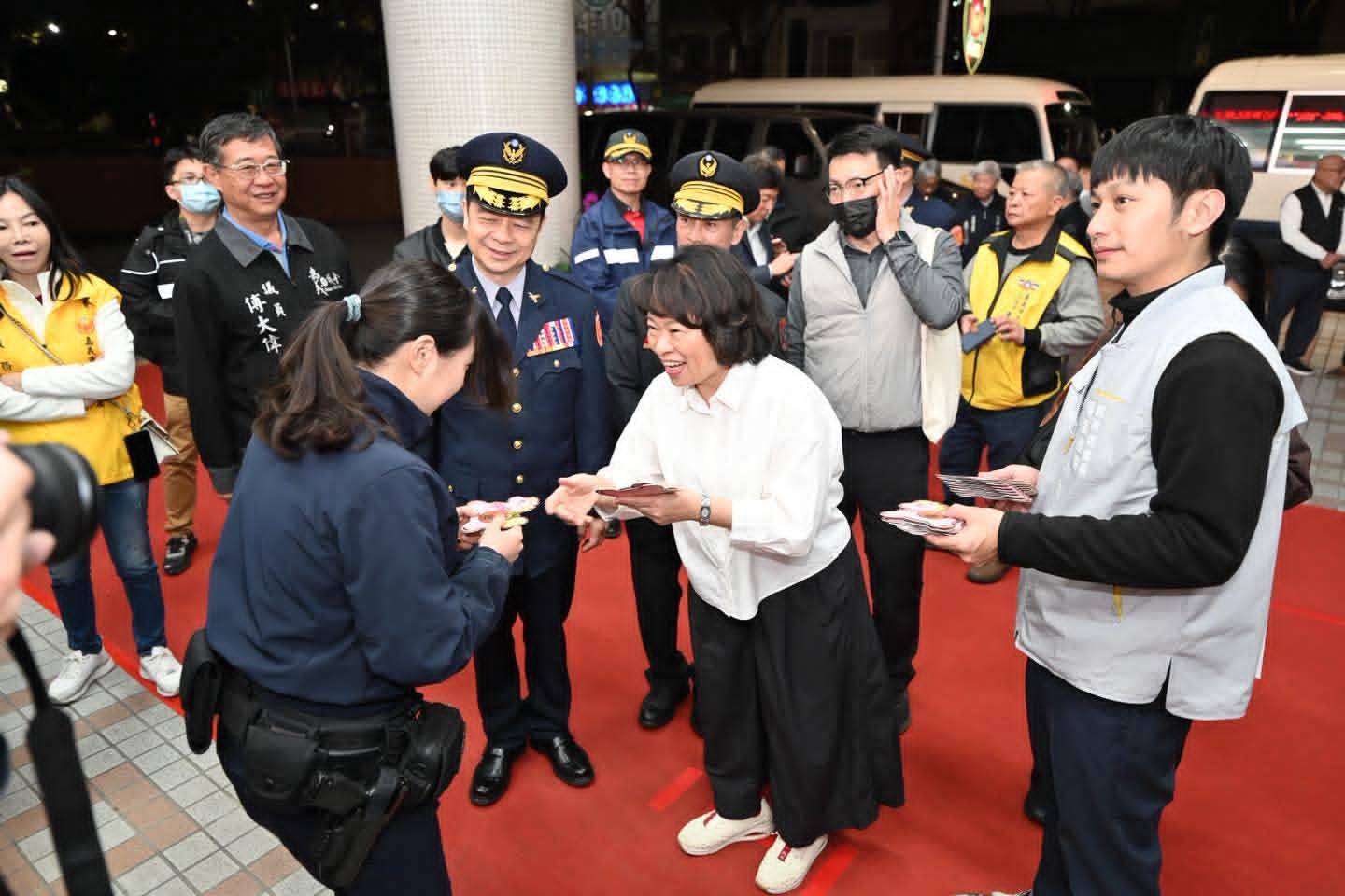 (天地傳媒特派員五毛嘉義報導)嘉義市長黃敏惠為慰勉115年加強重要節日安維工作執(協)勤人員!