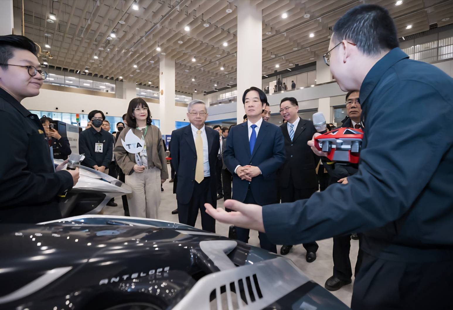 隨後,賴清德總統與現場貴賓一同進行啟動儀式,並參觀人工智慧及綠能技術研發廠商攤位。