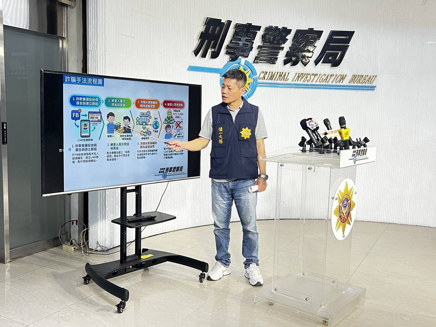 警政署刑事警察局4月10日14時30分,於刑事局召開「假投資詐團冒用股市名人『李○芳』名義,坑殺被害人5000萬元,刑事局逮兄弟檔等21人,扣押2豪車」新聞記者會。