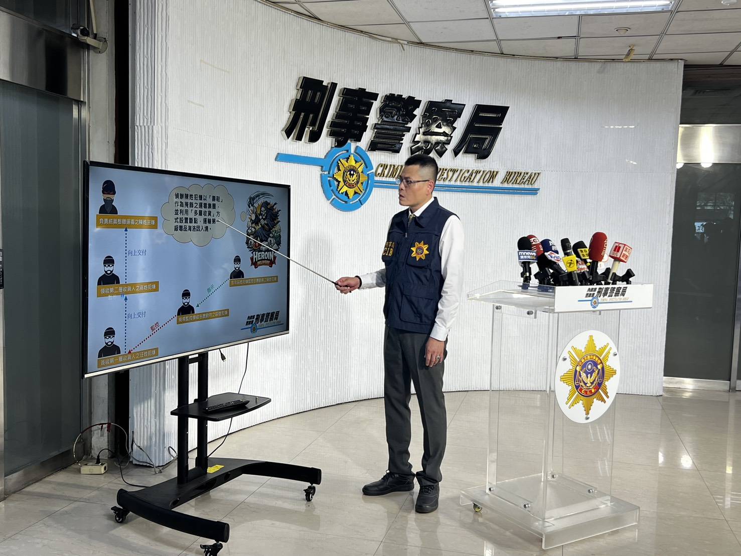 警政署刑事警察局4月14日14時30分召開:「請「鬼」抓「藥」單!壽鞋藏毒驚見海洛因8公斤,跨境運毒集團手法詭譎,刑事局層層追擊一網」記者會。