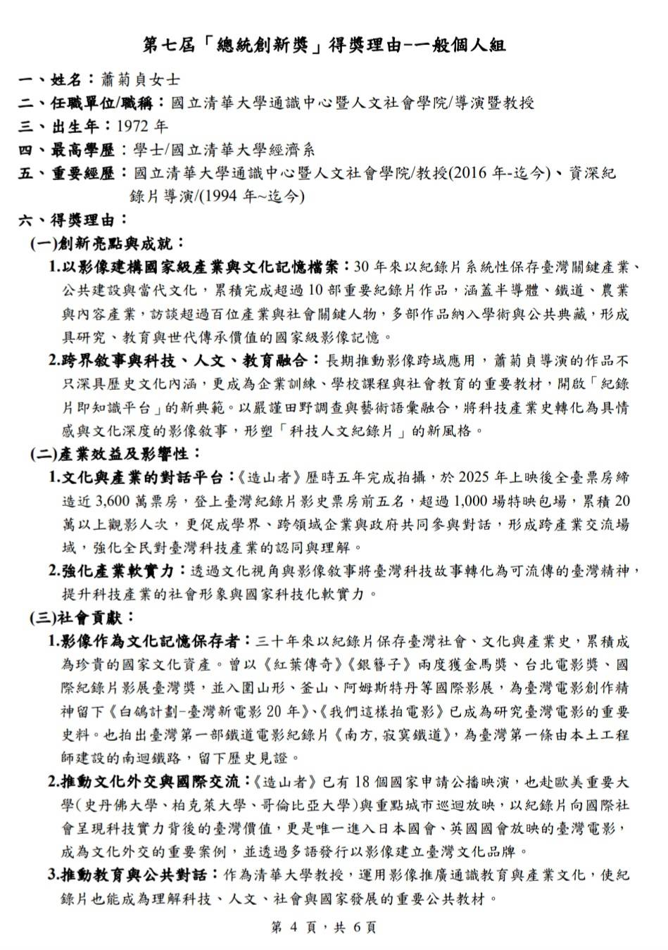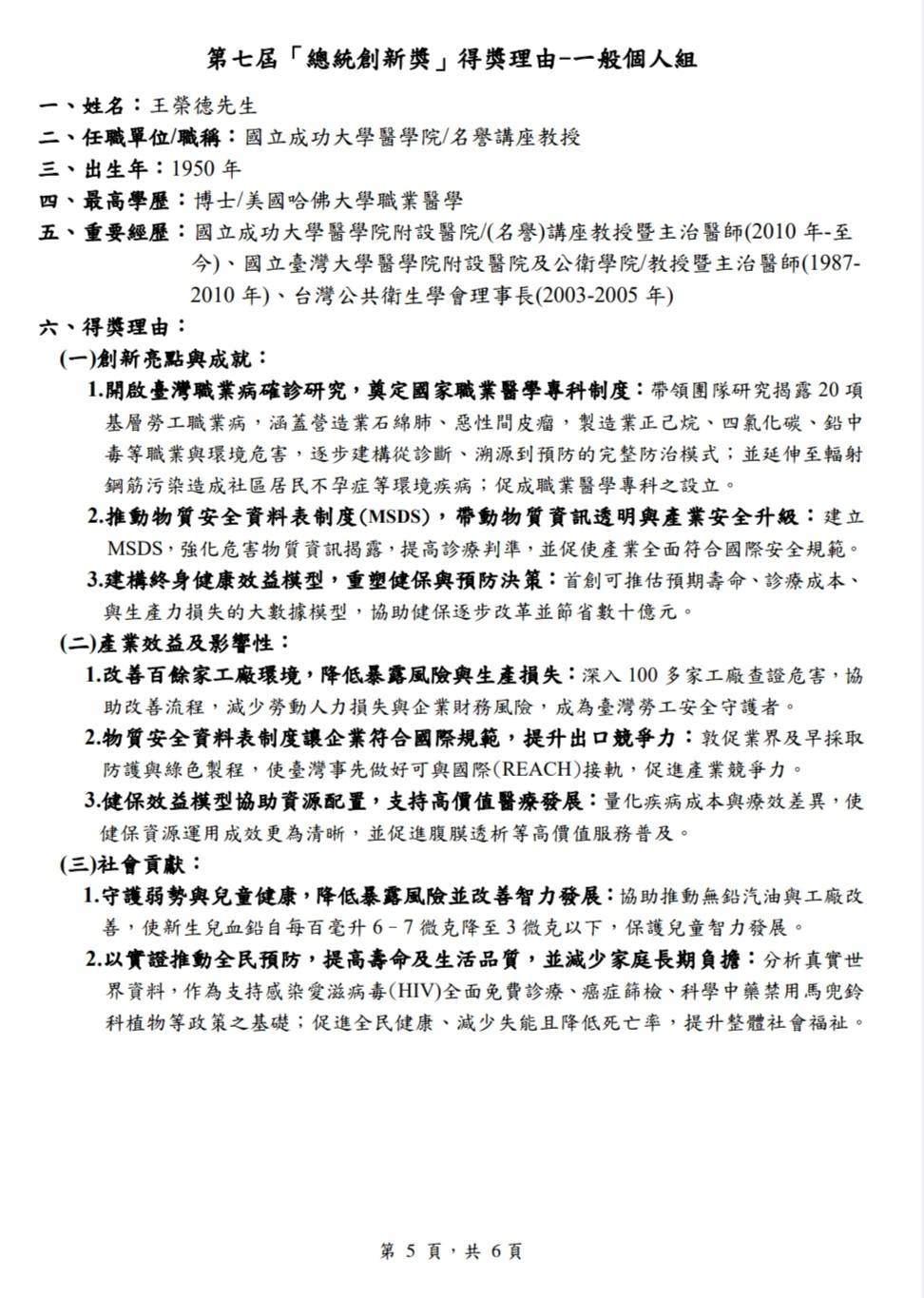 (天地傳媒特派員五毛台北報導)第七屆「總統創新獎」得獎名單!