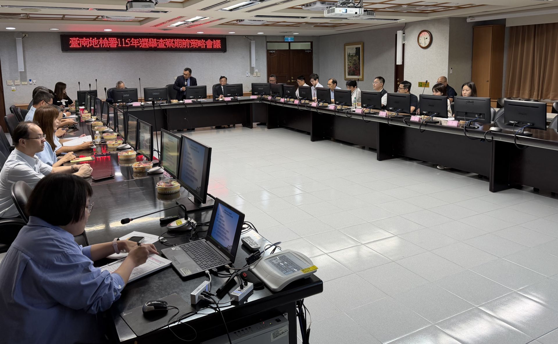 臺南地檢署因應115年11月28日舉行之地方公職人員選舉,於今(20)日下午在本署第一會議室,舉辦「115年地方公職人員選舉查察期前策略會議」,邀請臺灣高等檢察署臺南檢察分署黃玉垣檢察長蒞臨指導,由臺灣臺南地方檢察署鍾和憲檢察長親自主持,邀集轄區檢察、警察、調查、政風、移民等機關首長或代表共同參與。