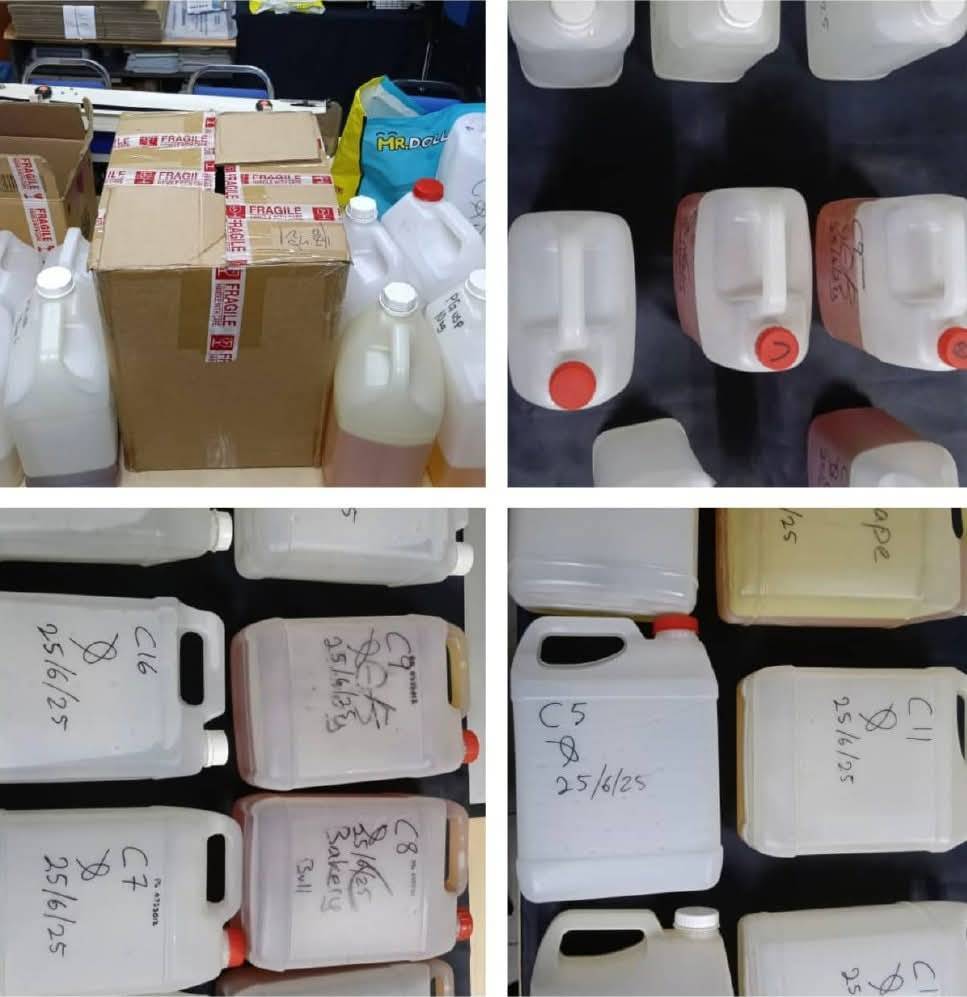 專案小組與馬方密切合作,優先鎖定境外製毒源頭,由我方鎖定運毒成員黃○○身分後,即時通報馬方跟監,經馬來西亞皇家肅毒局分別於114年5月28日及6月25日發動二波搜索行動,一舉破獲2處製毒工廠,逮捕臺籍犯嫌5人及外籍犯嫌2人,並查扣大量毒品液體(含甲基安非他命、芬太尼等成分)及製毒設備,有效攔阻大量毒品流入市場,降低對社會之危害。