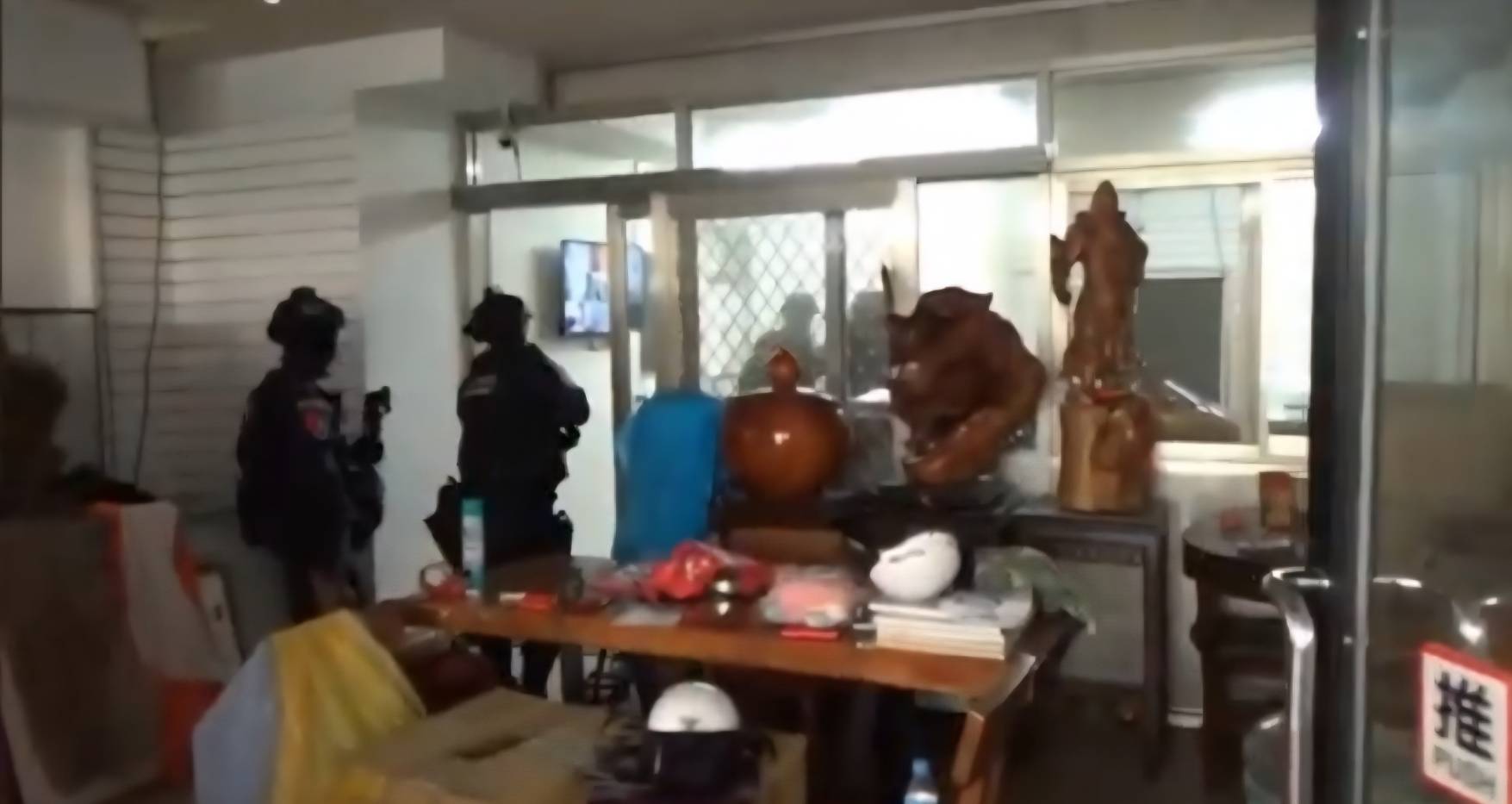 同時,起出查獲贓證物:現金新臺幣(以下同)143萬400元、牌匾4面、點鈔機1台、球棒1支、K盤3組、K他命1包、大麻花1包、安非他命1包、監視器主機1組、筆電2臺、存摺2本、金融卡4張、手機24支等證物。