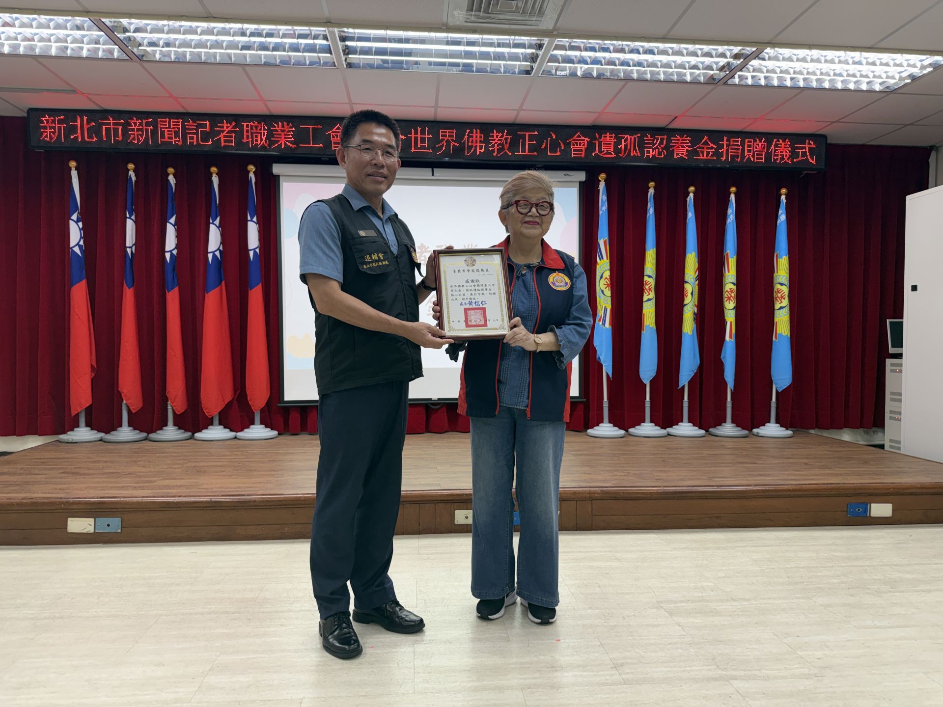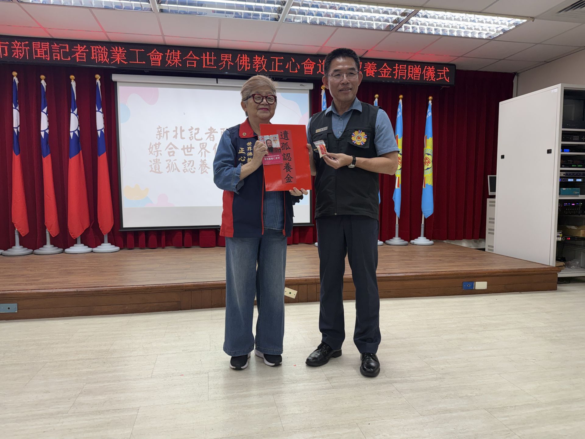 世界佛教正心會執行長陳和慧表示,佛教正心會的總會設址於板橋,正對面就是榮民之家,每周都到榮家帶領長輩們念佛、誦經、進行Wiser球運動,長期關懷榮民,今天非常開心能代表該會贈遺孤認養慰問金協助生活清苦的遺孤。
