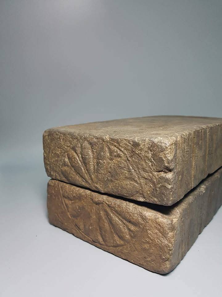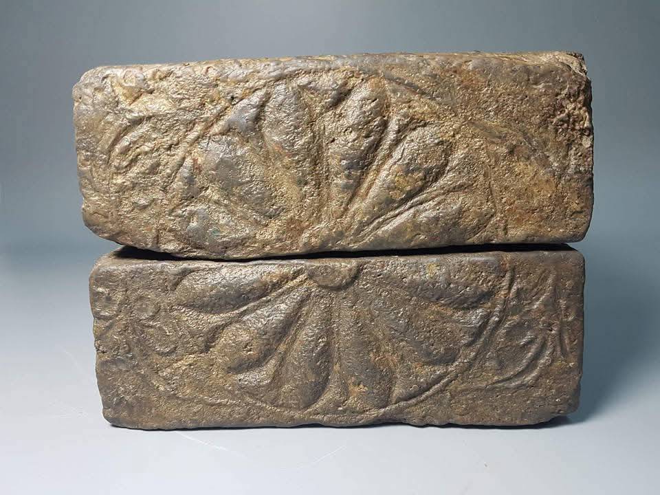 (天地傳媒特派員五毛台北報導)漢磚、南朝對花蓮花磚、整磚、一對出、皮殼風化感極佳