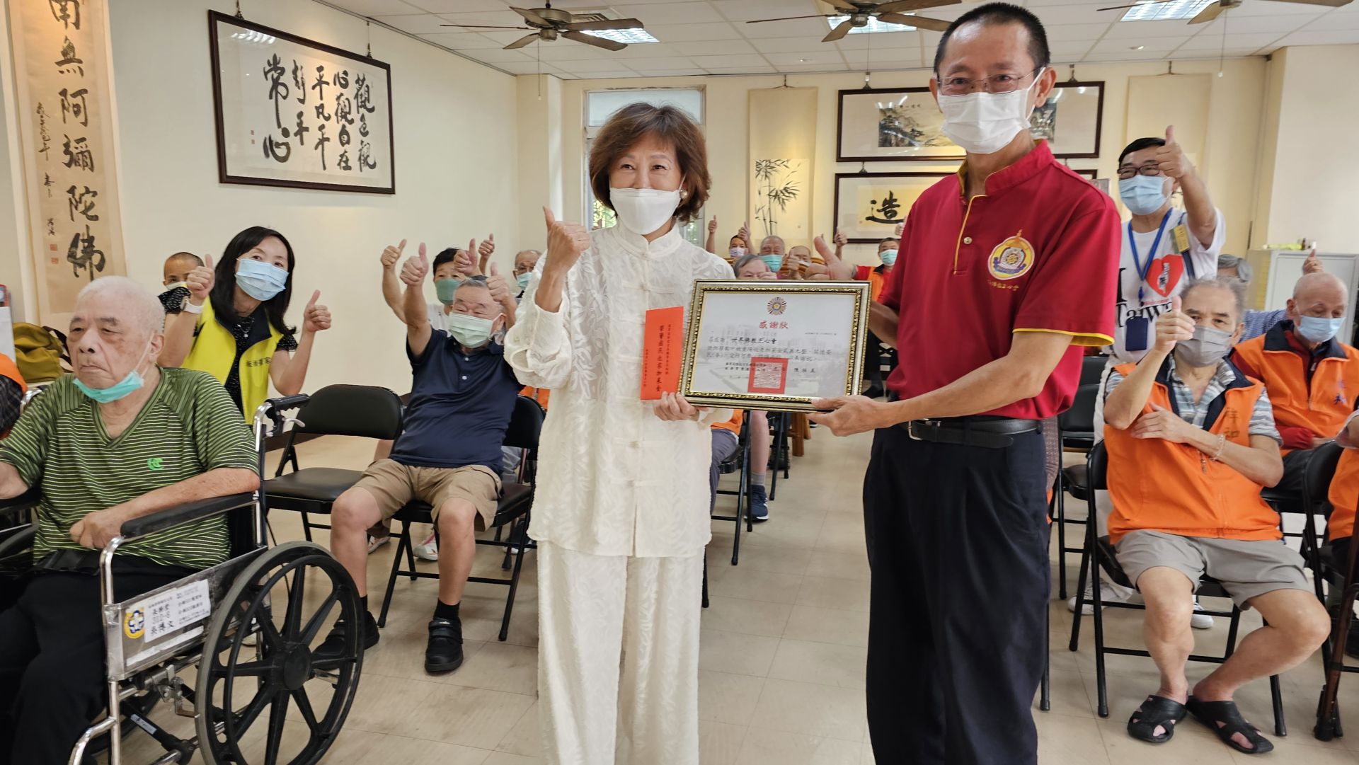 世界佛教正心會在中秋重陽之際,在全台舉辦公益活動,於上週四致贈板橋榮家2萬加菜金,今(7日)在嘉義新西里捐助獨居老人中秋禮金,藉由一點點的關懷溫暖長者的心。