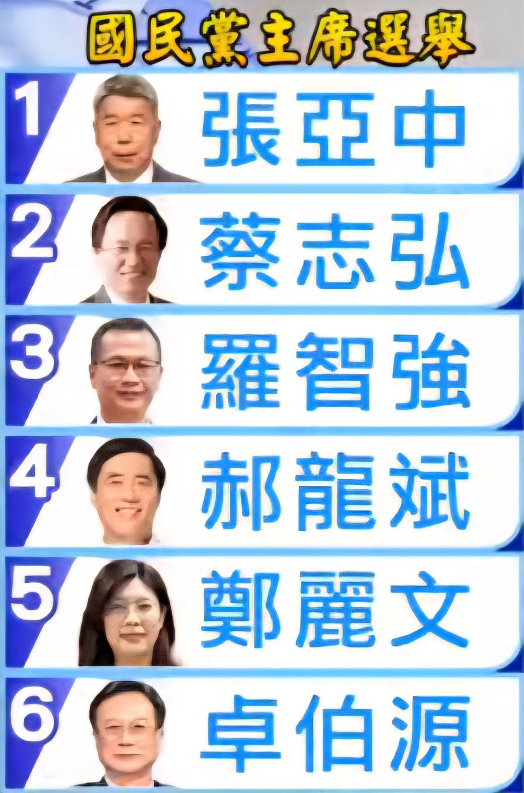 昨(18日)天,國民黨主席選舉,投開票結果,鄭麗文拿下6萬5,122票,以50.15%的得票率,贏得壓倒性勝利,順利當選中國國民黨主席,擊敗其他五名參選人,包括:前台北市長郝龍斌、國民黨立委羅智強、孫文學校總校長張亞中、前國大代表蔡志弘、前彰化縣長卓伯源等人。