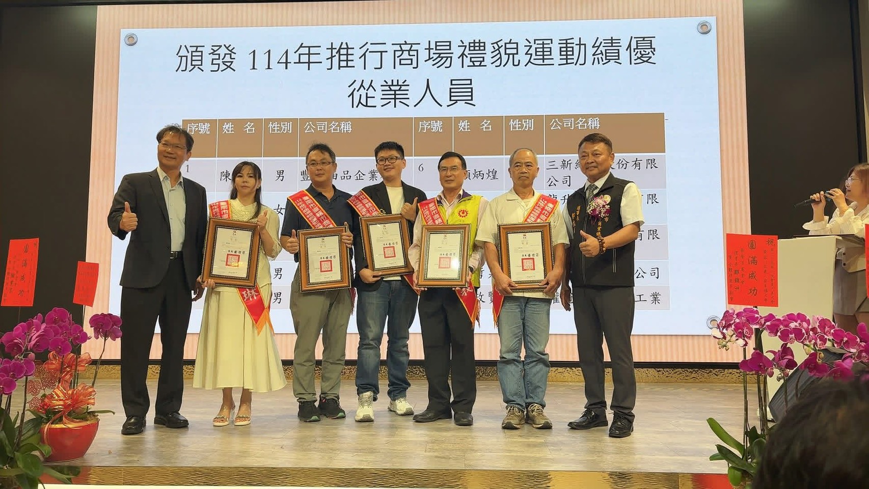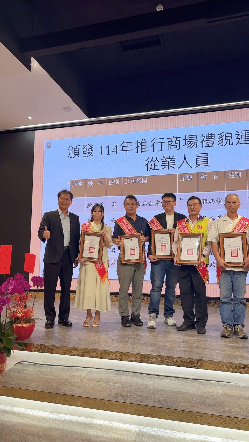隨後,由臺南市政府經濟發展局副局長蕭富仁代表市長黃偉哲,頒發「114年度績優商號」與「114年度績優從業人員」獎項,以表彰商界人士對地方經濟發展的貢獻與努力。