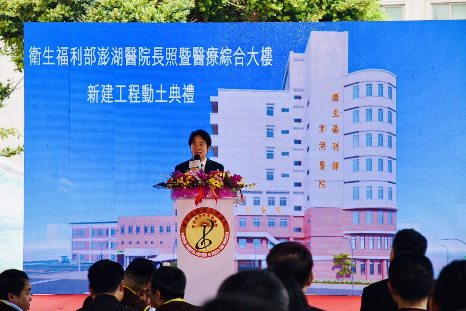 總統賴清德親自出席,偕同衛生福利部政務次長呂建德、澎湖縣長陳光復、澎湖醫院院長匡勝捷、副議長藍凱元等多位重要貴賓,共同見證這歷史性的一刻。該工程預計於民國118年12月竣工,屆時將為澎湖鄉親提供地區型的醫照整合性健康服務。