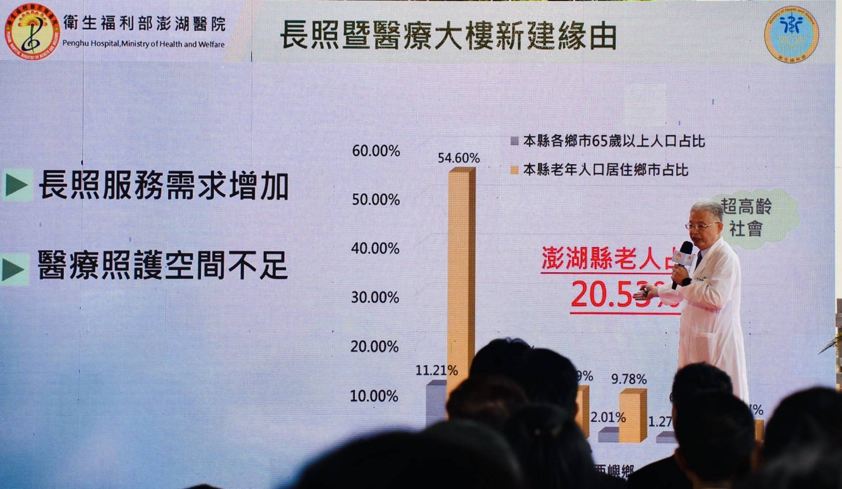 賴清德指出,澎湖縣65歲以上長者比例已超過20%,達到超高齡社會標準,加上離島醫療資源相對不足,更凸顯了強化醫療資源的必要性。