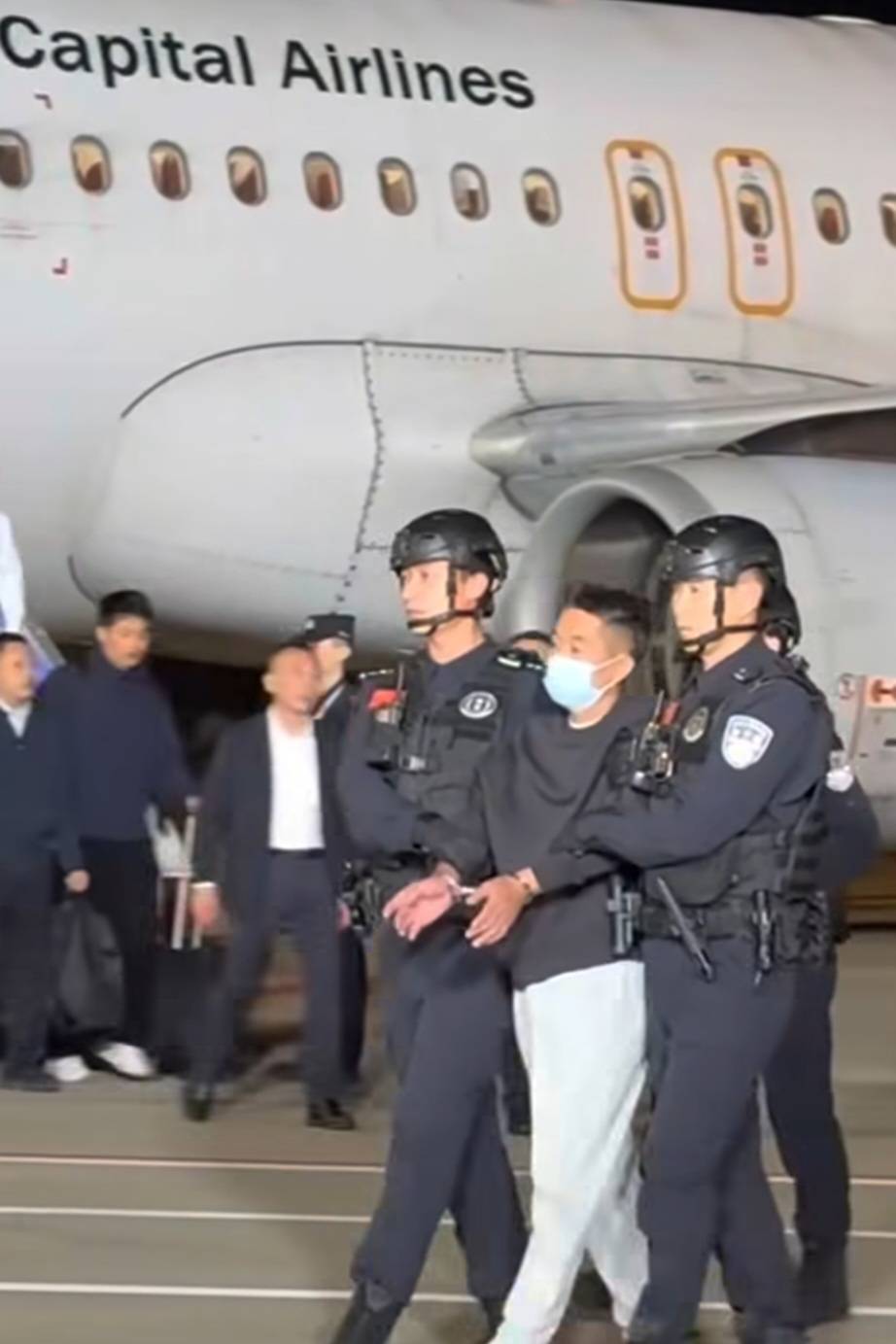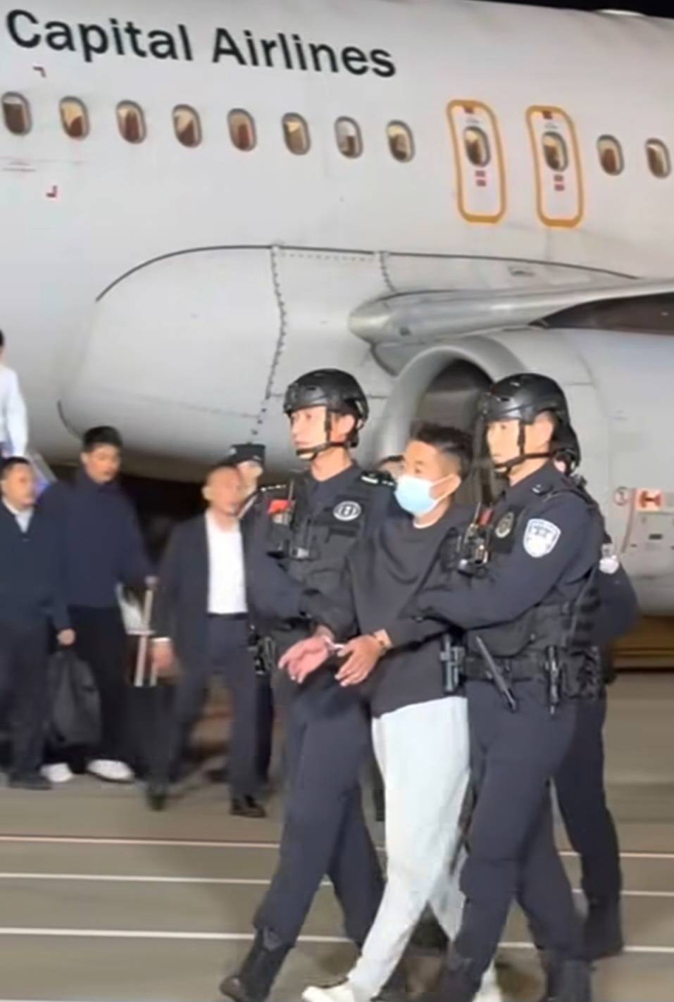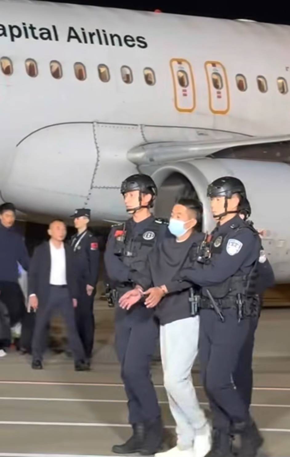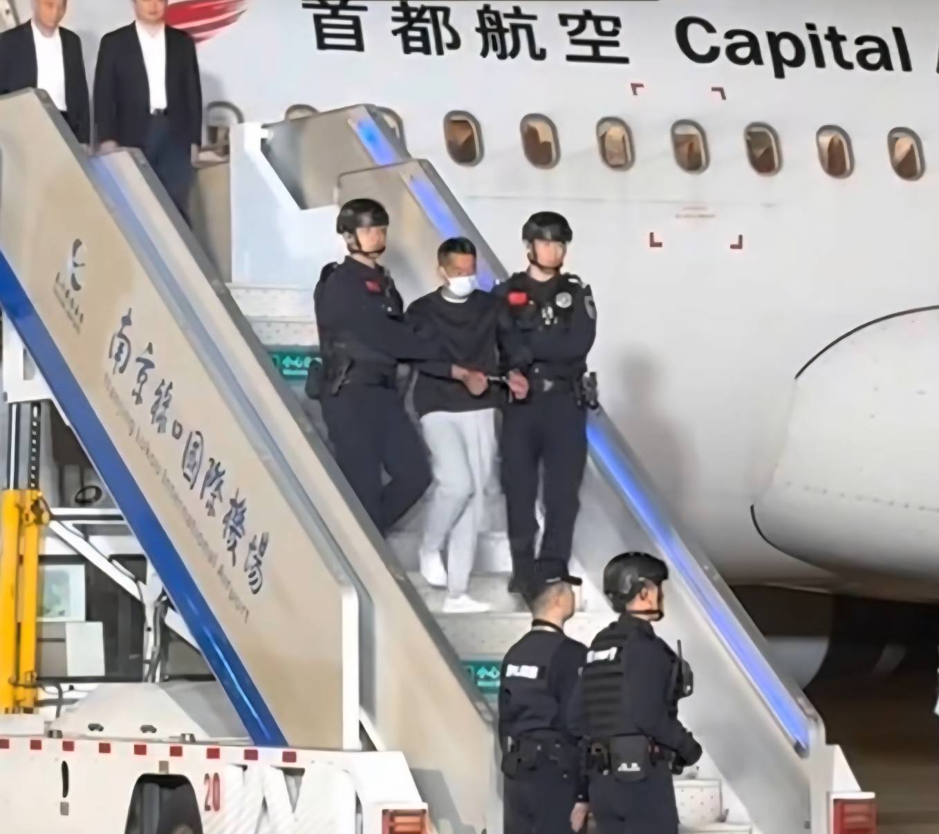2025年11月12日,中國民航客機降落在南京祿口國際機場,中國公安機關押解遭通緝獲得柬埔寨國籍的華裔東南亞經營非法線上賭博平台賭業大亨、跨境賭詐犯罪集團頭目,跨境賭博「十大逃犯」之一、緬甸妙瓦底「亞太新城」賭詐犯罪集團主嫌犯佘智江(She Zhijiang,又名:佘倫凱)自泰國引渡返回中國。