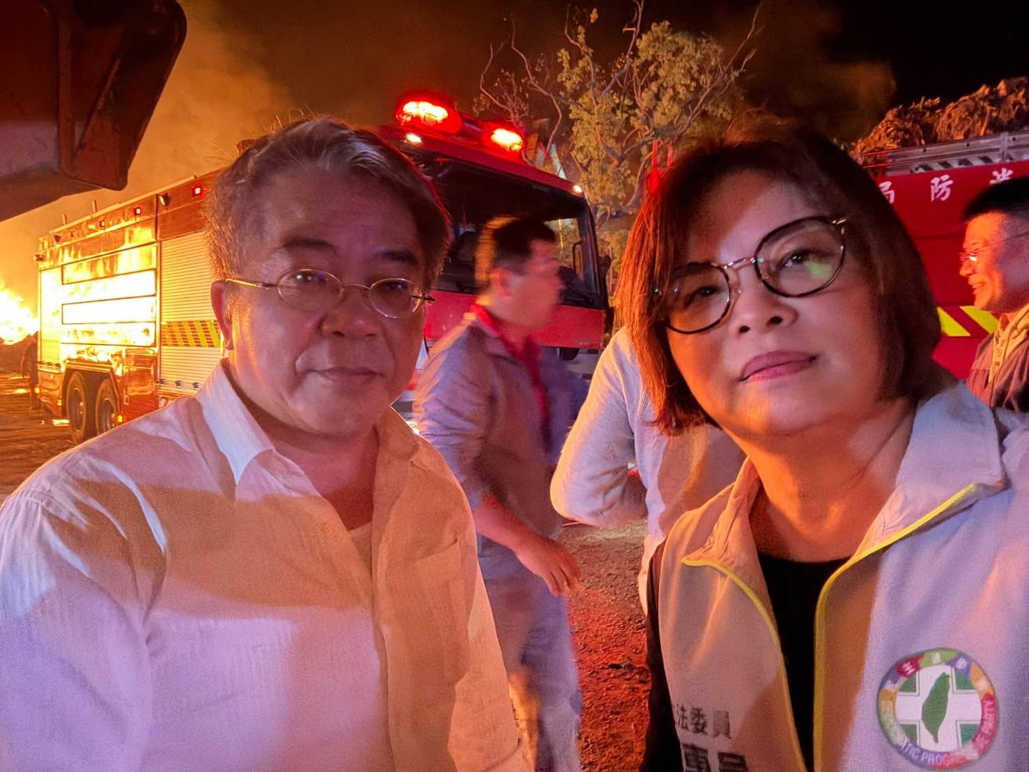 立委賴惠員、台南市議員李宗翰,王宣貿台南市政府環保局長許仁澤,台南市政府消防局長李明峰等人,於台南市後壁區烏樹林廢棄物暫置場大火一發生,第一時間,不顧生命危險,火速趕往火場關心。