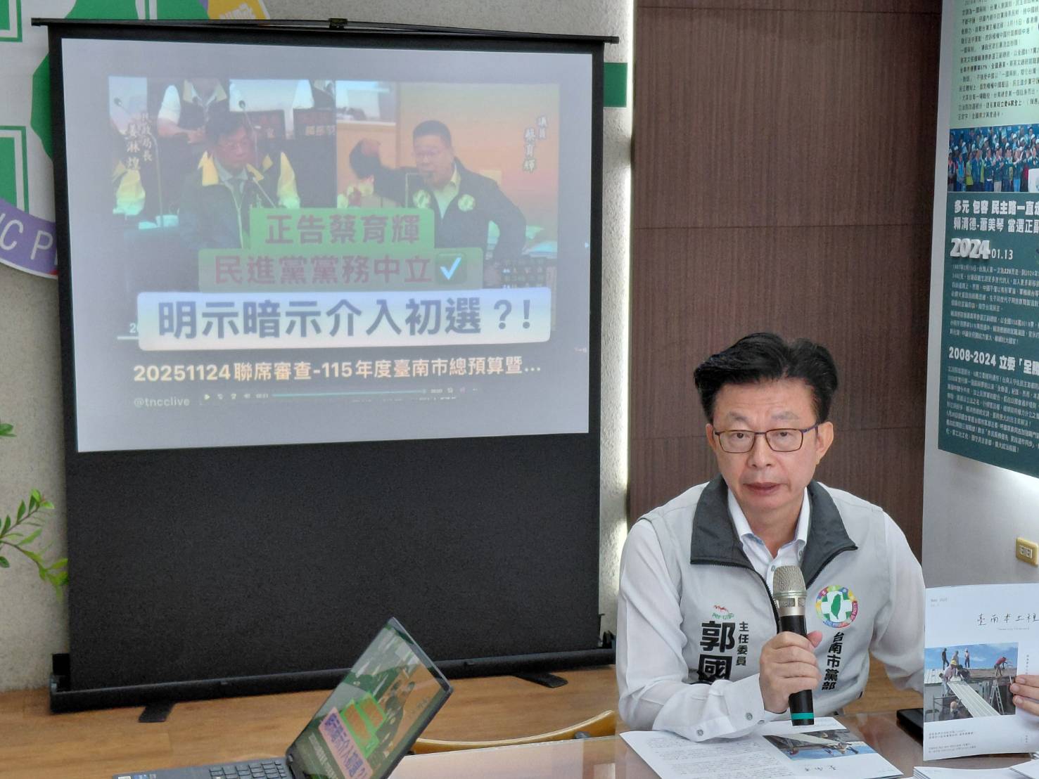 (記者五毛台南報導)針對近期黨內初選,有質疑黨部中立,也有對國民黨介入民進黨初選提出事證。.jpg)