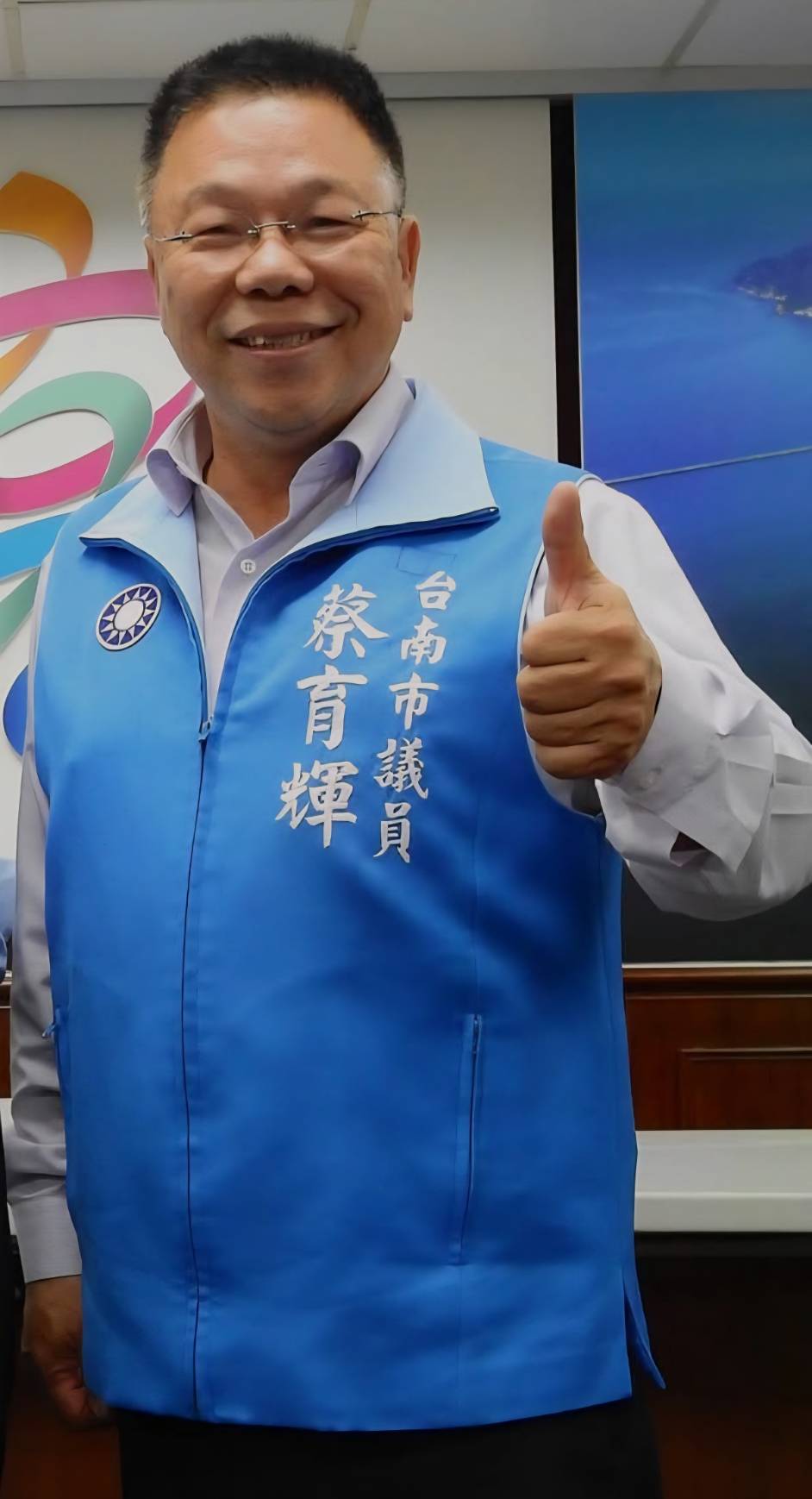 台南市議員蔡育輝回應,他是批評賴總統當主席不公乎、郭市主委不公平、黃偉哲市長不公平,支持林俊憲、打壓陳亭妃、他同情陳亭妃、支持陳亭妃。
