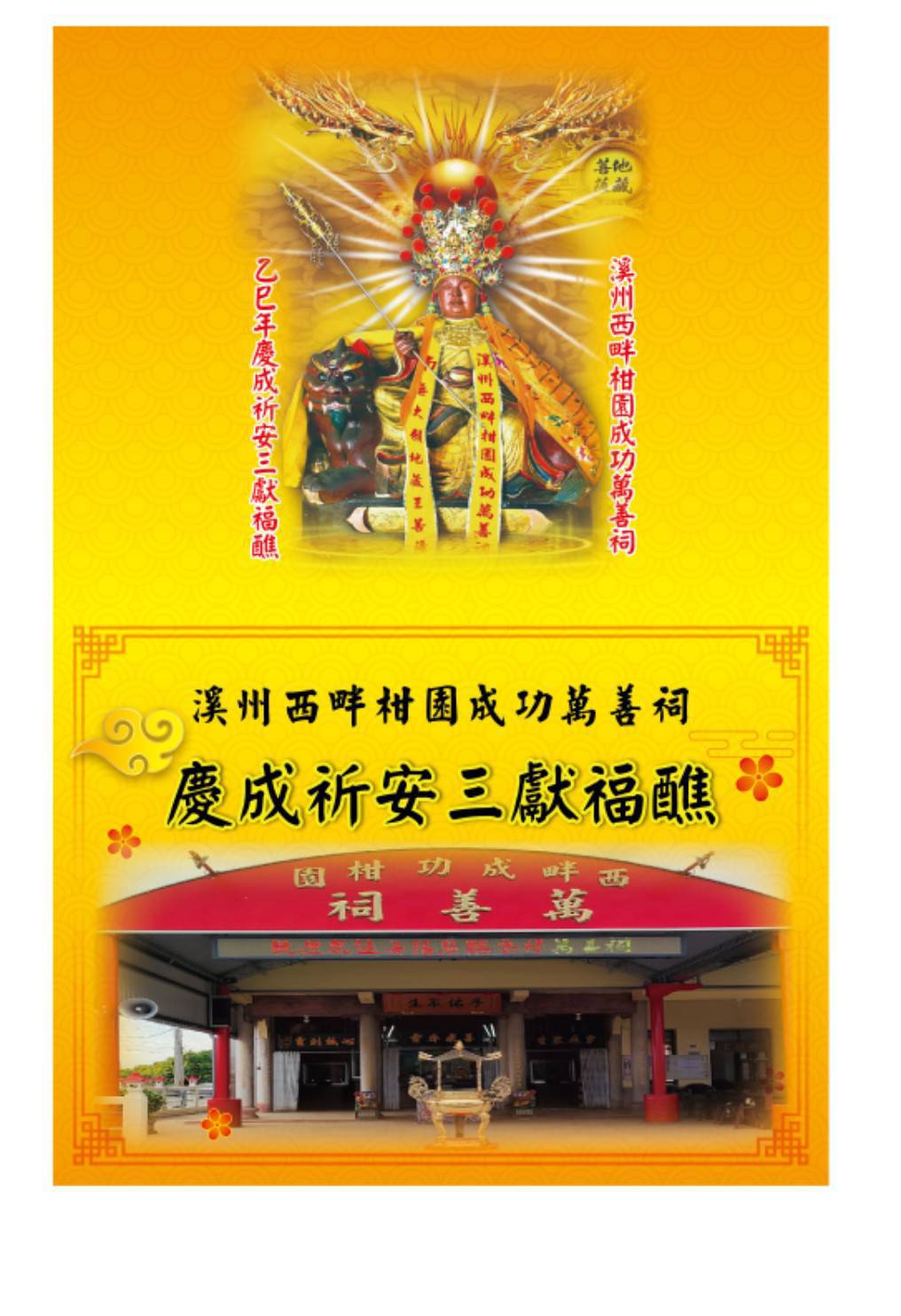 西畔柑園成功萬善祠一直以來香火旺十方,建醮50週年來臨,不僅是庄頭的重要事,更是溪州鄉民的重頭戲,是凝聚信仰、團結的重要時刻。地方仕紳、廟務人員與信眾皆對王惠美縣長的支持表達由衷感謝。同時縣長也呼籲彰化鄉親都能蒞臨欣賞,也認為此舉主要是提升慶典層次,更促進地方藝文發展起頭式。