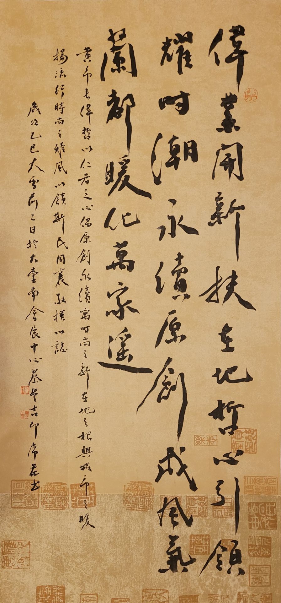 此外,書法聯誼社於展期間舉辦「名家新春春聯義賣」,所用皆為頂級萬年紅宣紙,每幅為名家真跡。今日求書者眾,義賣所得將全數捐贈「向日葵公益慈善會」,以實際行動傳遞溫暖。民眾300至1000元隨喜捐助,歡喜取回春聯皆有,善款將全數投入慈善用途。