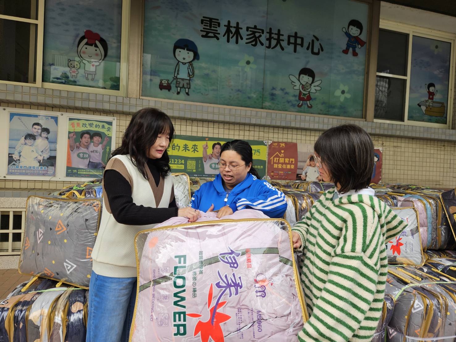 雲林家扶表示:入冬以來這波冷氣團讓人冷支支,感謝胡珊珊等的努力之持家扶,讓愛不間斷讓溫馨持續不斷,才得以通知附近的家長來領取暖被,社工們也動員將棉被即時送達服務家庭手中,幫助大家度過嚴寒冬天。