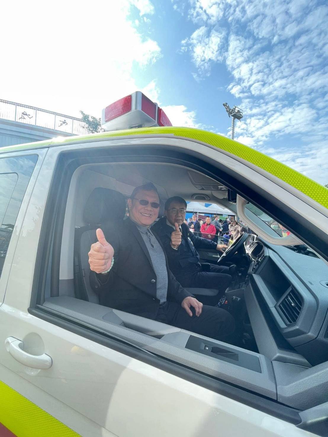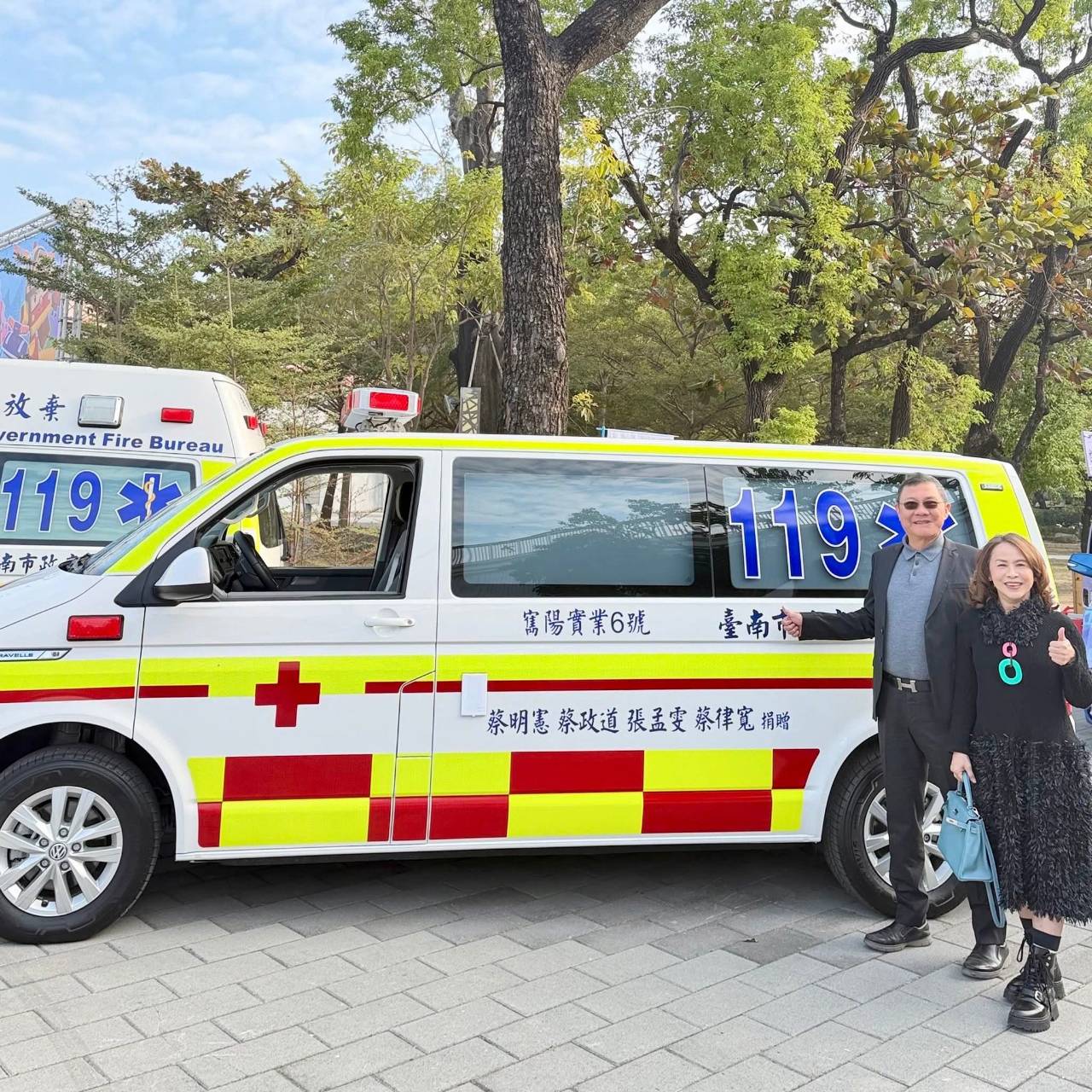 (天地傳媒特派員五毛台南報導)寯陽實業有限公司董事長蔡明憲捐贈救護車!