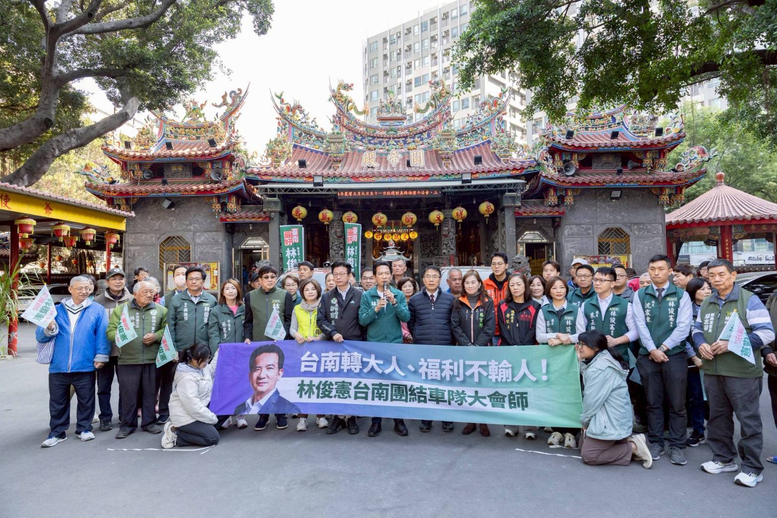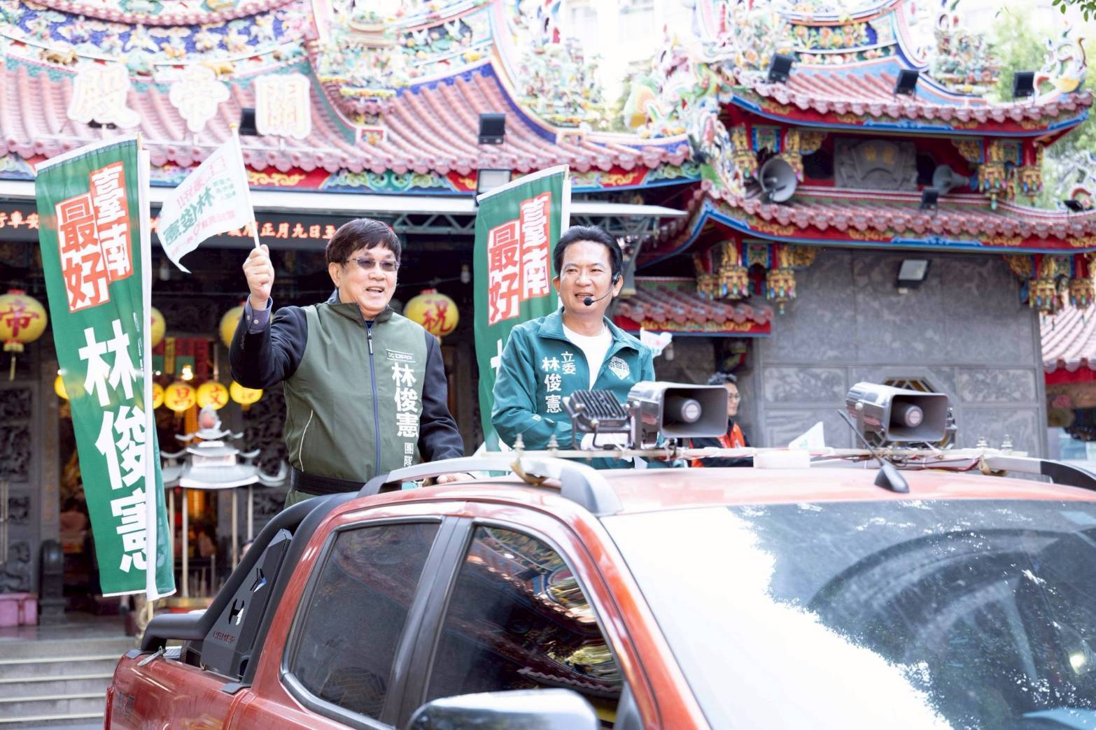 林俊憲表示,今天車隊從東區關帝殿啟程,其實在台南的民主發展中別具意義,過去賴清德競選市長與總統時,都會從關帝殿啟程。