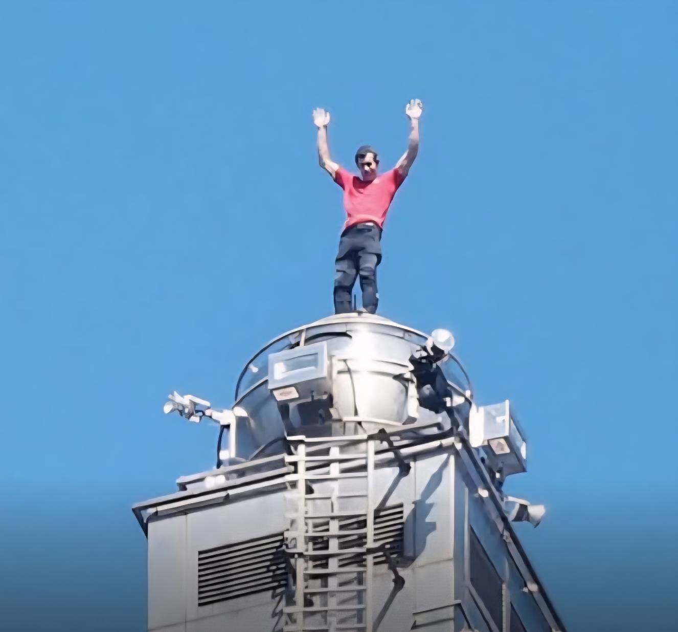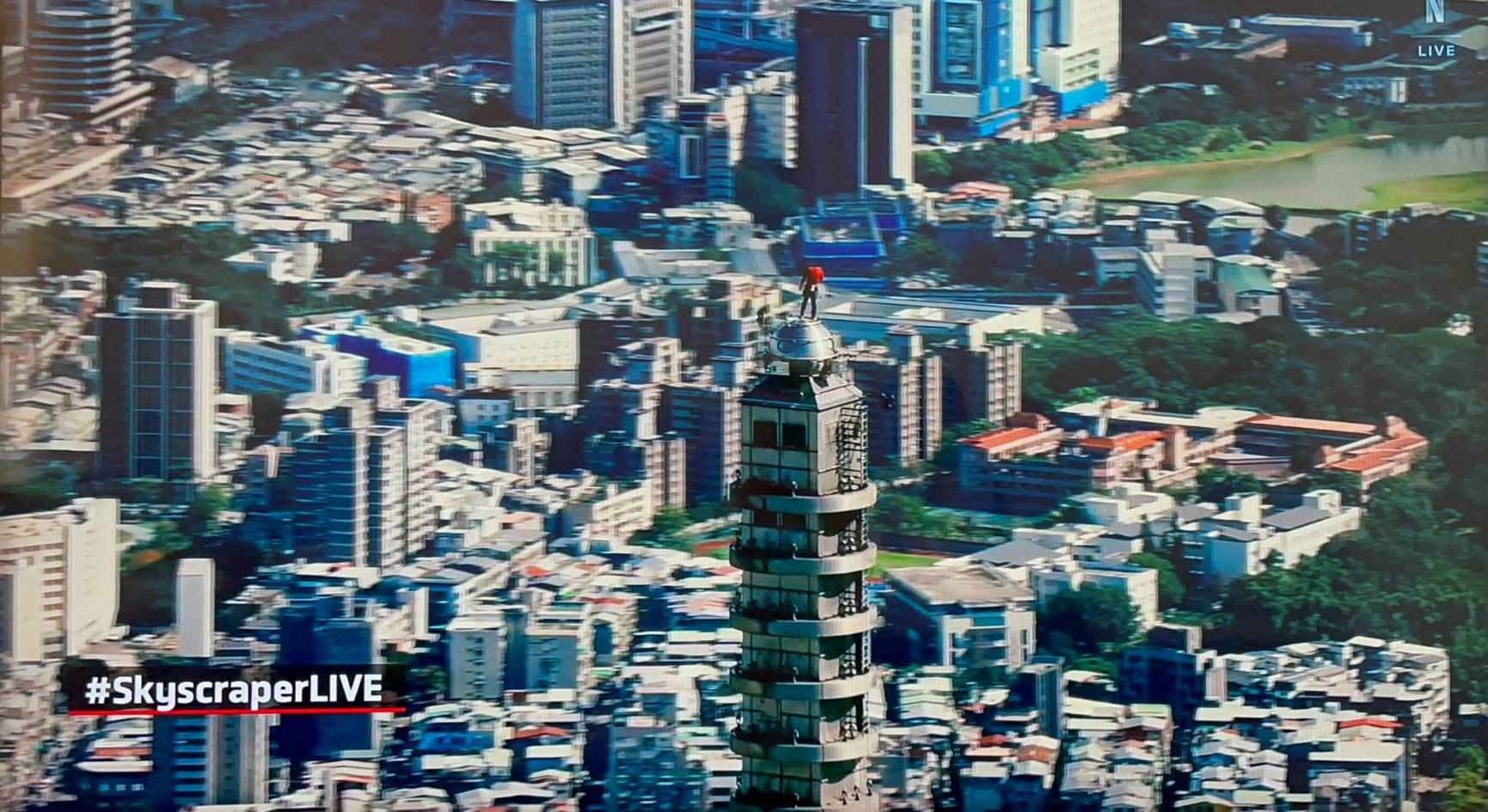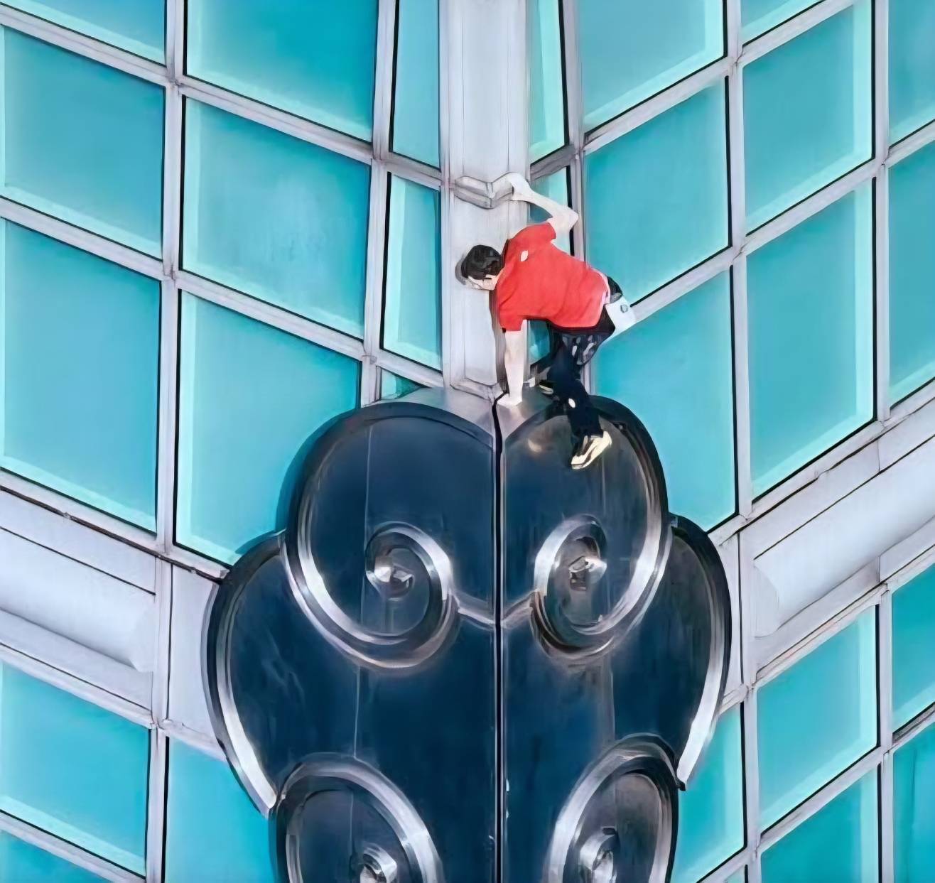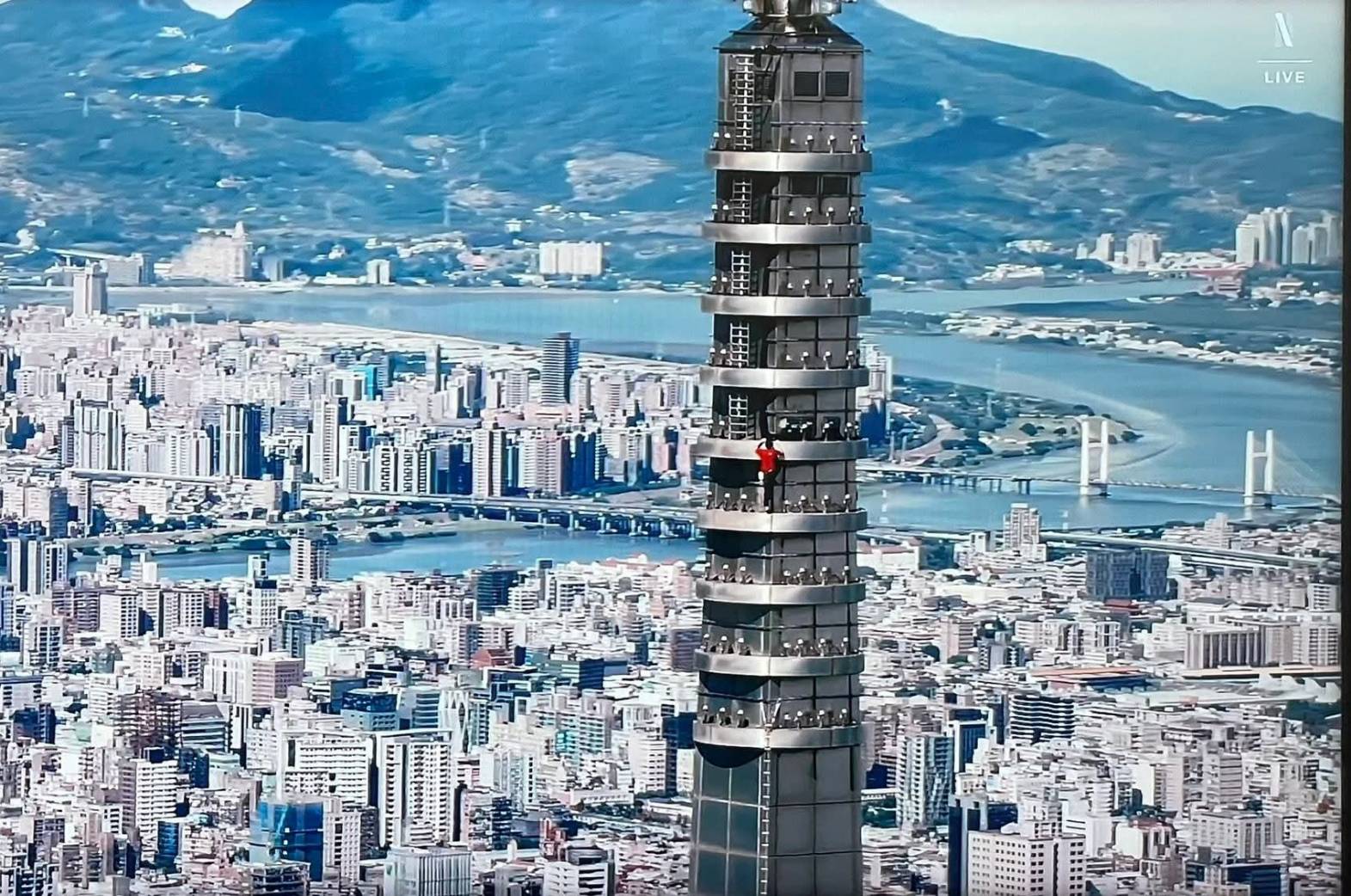 美國自由攀岩家艾力克斯霍諾德(Alex Honnold)朝避雷針邁進!今天(1月25日)上午10:44「徒手攀登」,完成台北101樓攀爬,完成剩下最後塔尖段!
