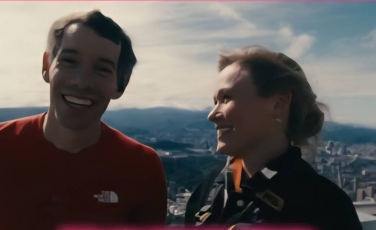 美國自由攀岩家艾力克斯霍諾德(Alex Honnold)的妻子桑妮(Sanni)笑說:「走出建築物時實在太瘋狂,這麼多人幫他加油,這麼多人替他緊張,我那時候心想,天啊,還好我不是他。」