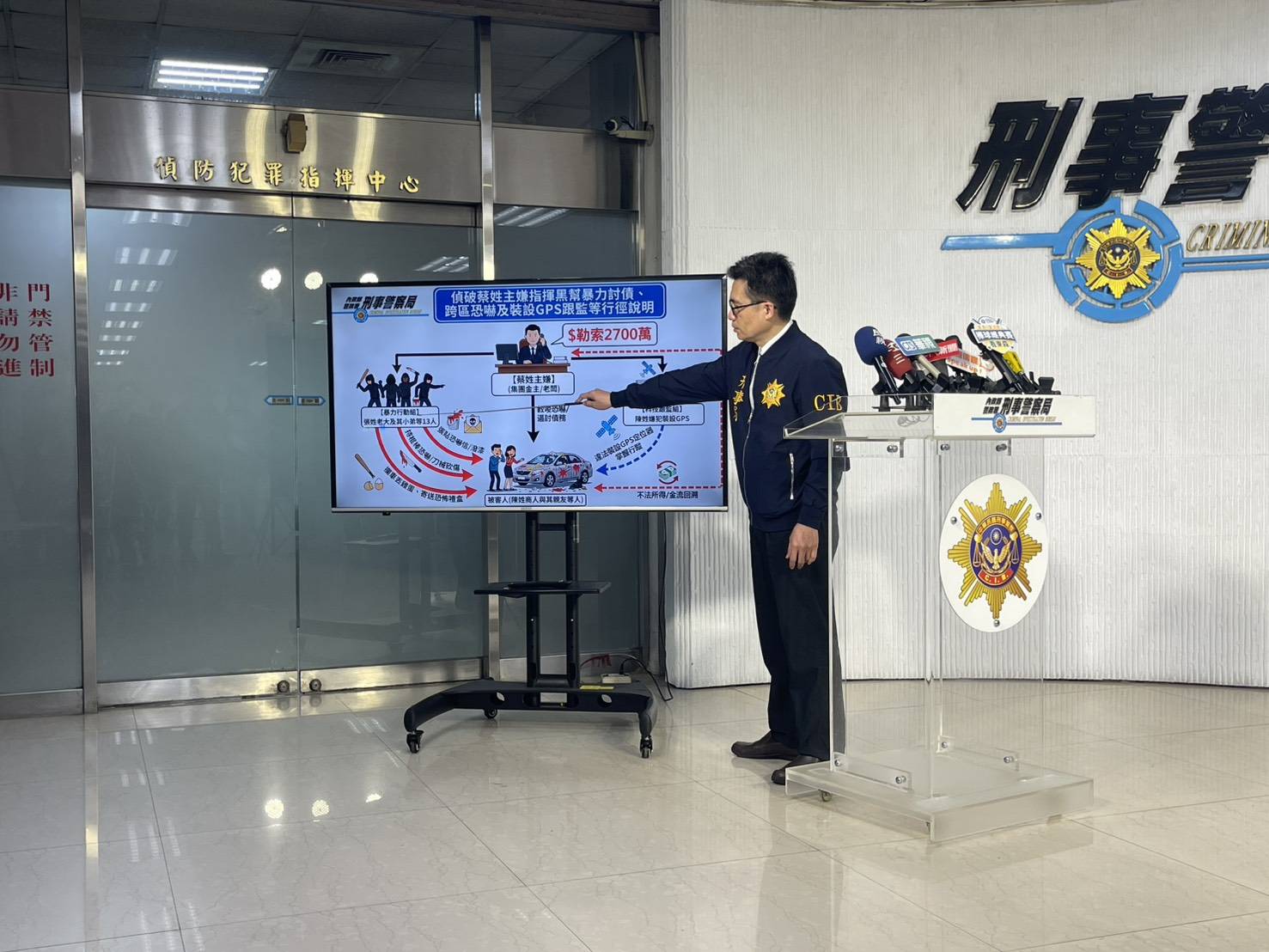 警政署刑事警察局1月27日14時30分,於刑事局召開「刑事局破獲國內黑幫經營地下錢莊涉嫌暴力討債勒索千萬」新聞記者會。