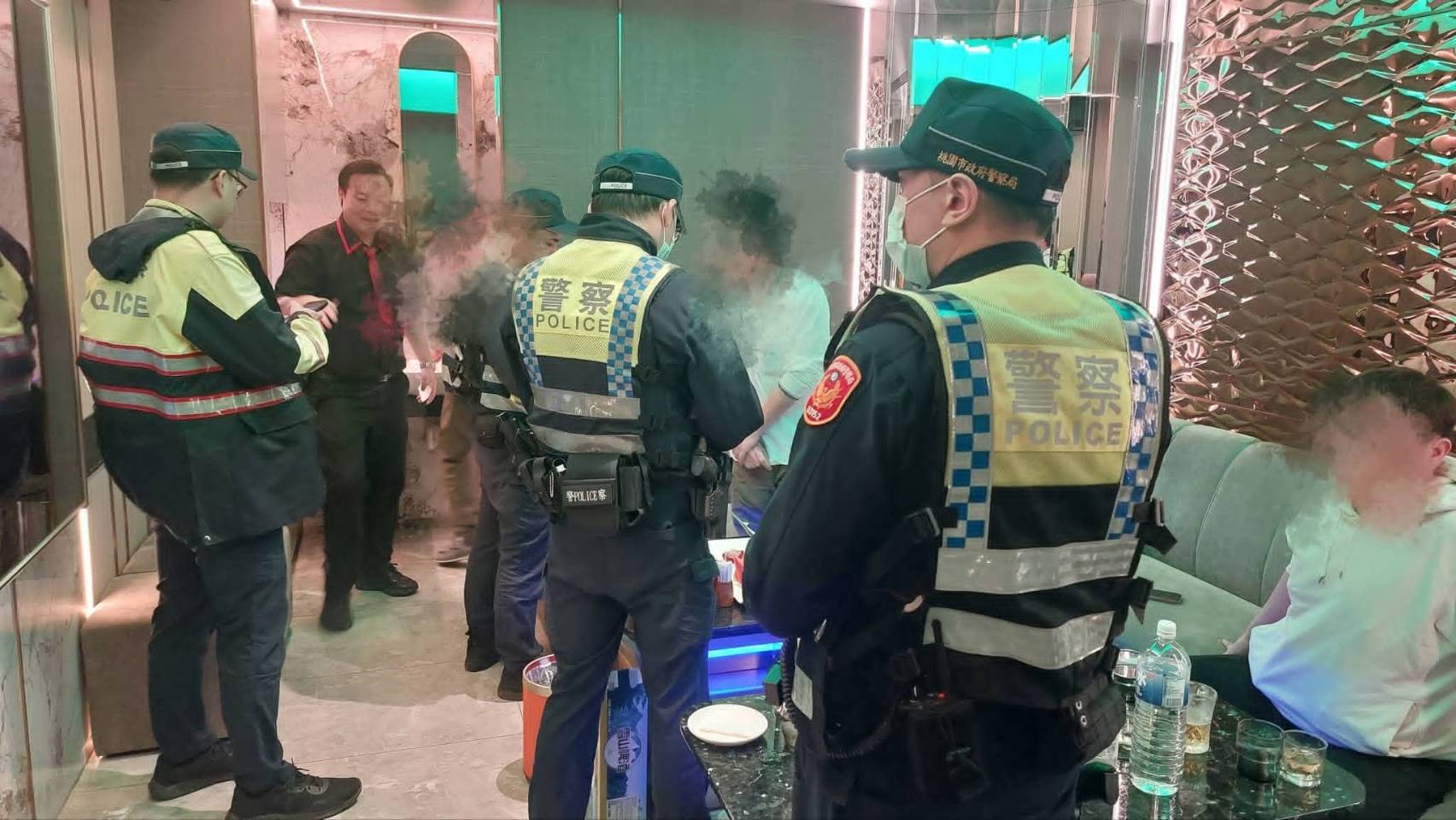 桃園警察分局於週休假日晚間規劃執行雷霆除暴專案,針對轄區內旅賓館、酒店、KTV及電子遊藝場等特種場所進行密集性臨檢查察,同時在於周邊路口設置攔檢點,以封閉式攔檢,加強取締惡性交通,展現維護社會治安、保障市民安全的決心。