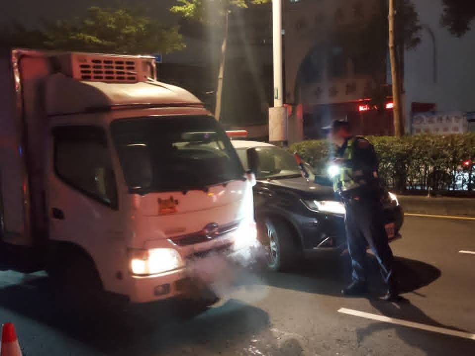 員警執行雷霆除暴專案,加強重點交通違規攔查,於今(1)日1時許,在三民路與長壽路口發現一輛雙載機車未開啟大燈,立即進行稽查勸導。