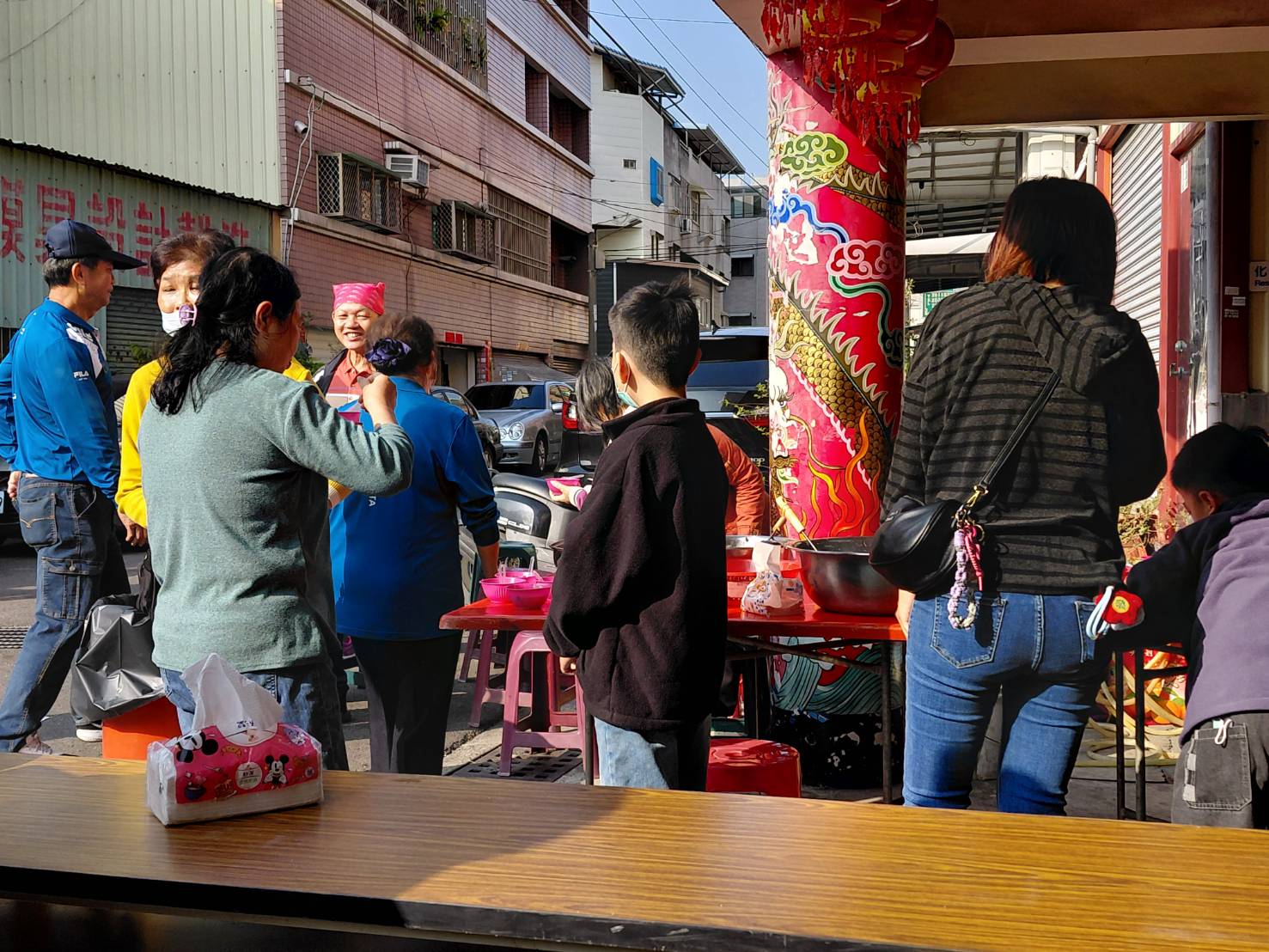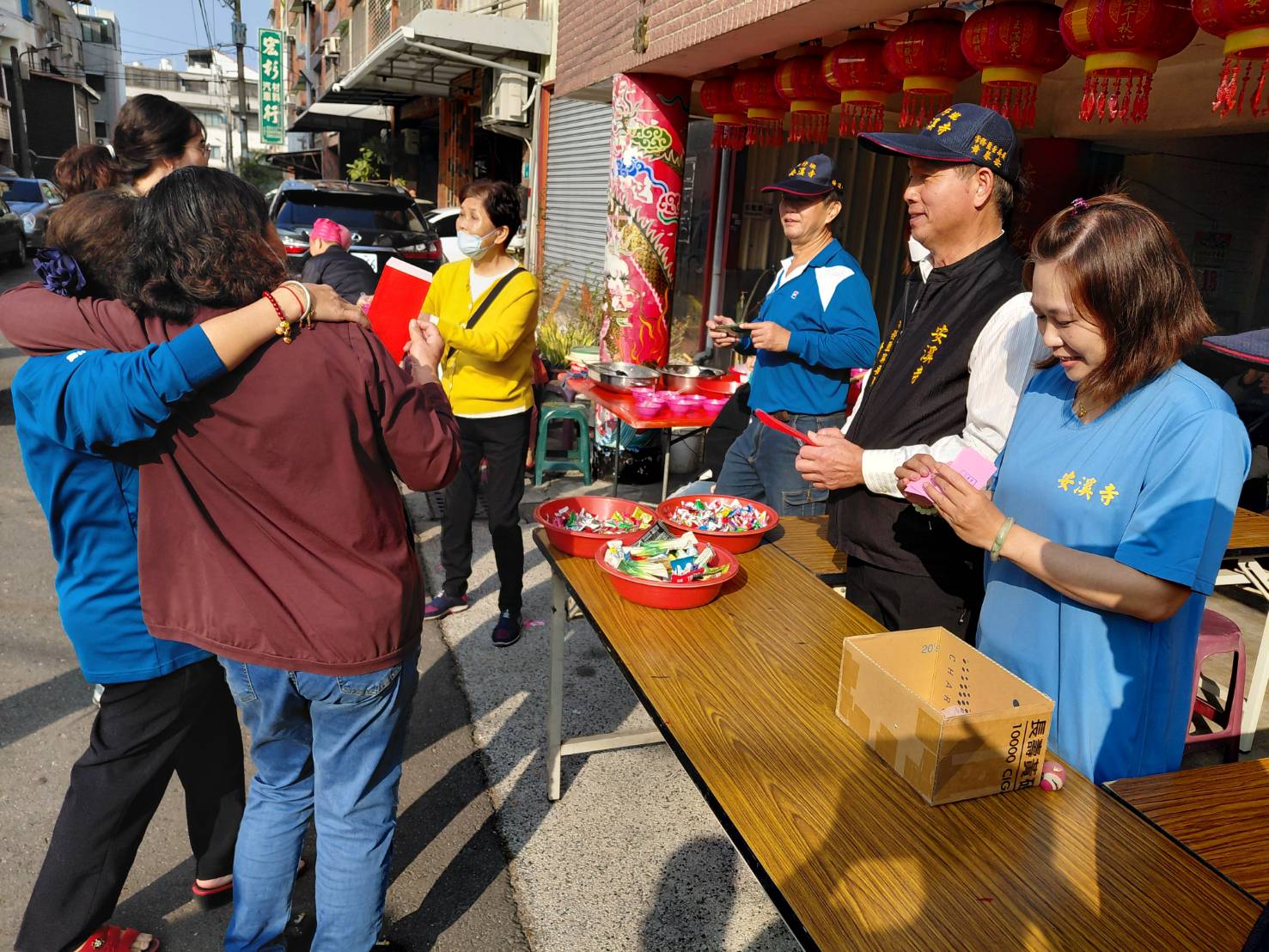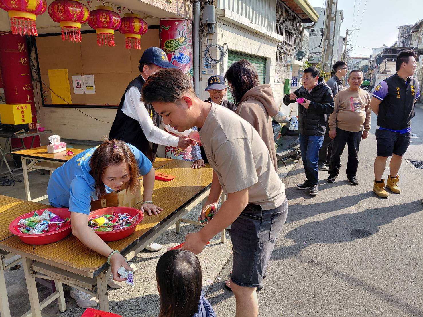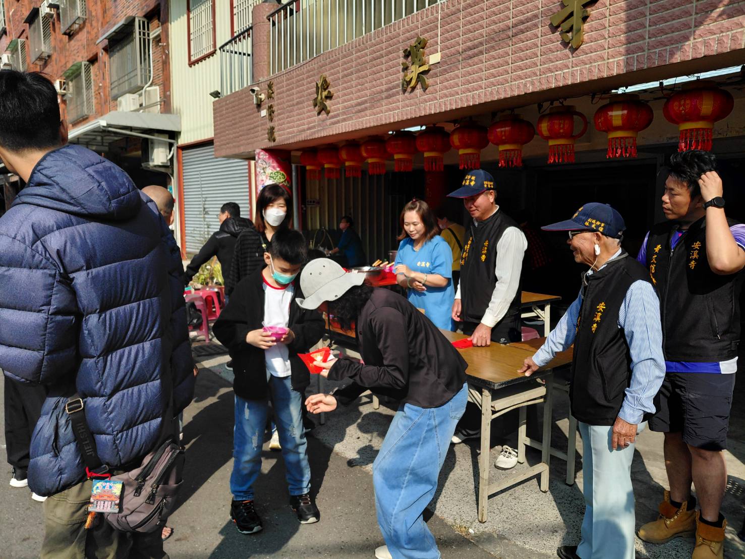 台南市溪仔墘安溪寺委員幹部今(17)日為大年初一,農曆正月初一日星期二07:00就趕抵安溪寺幫忙發放新春紅包,厝邊頭尾來領紅包,場面強強滾。