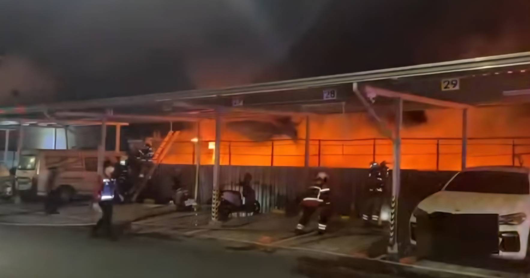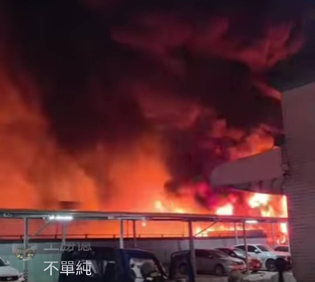 台南市安南區培安路大火160輛汽車、200輛機車陷火海,熊熊大火,烈焰濃煙直竄天際!