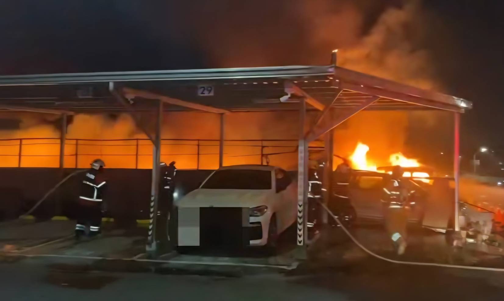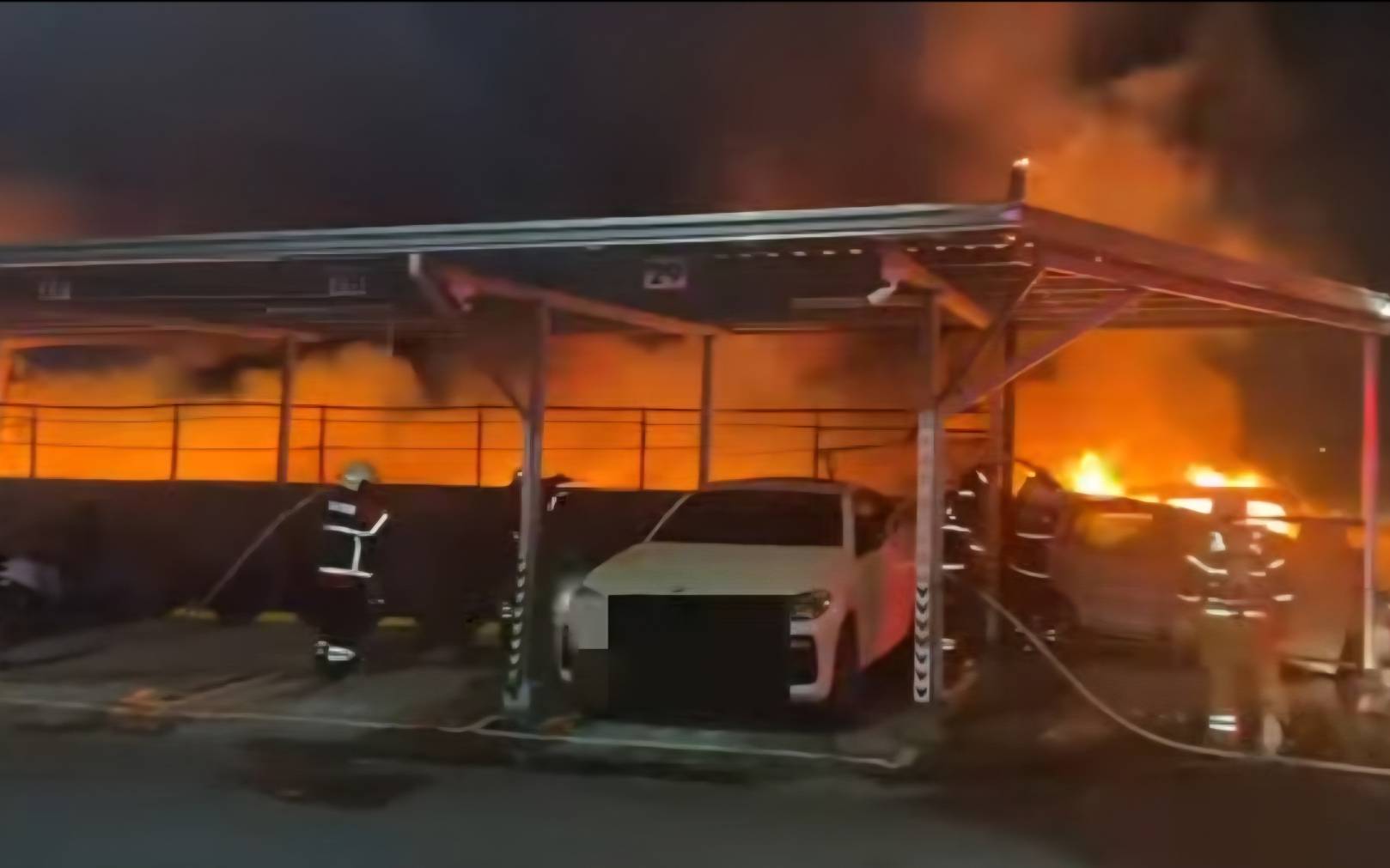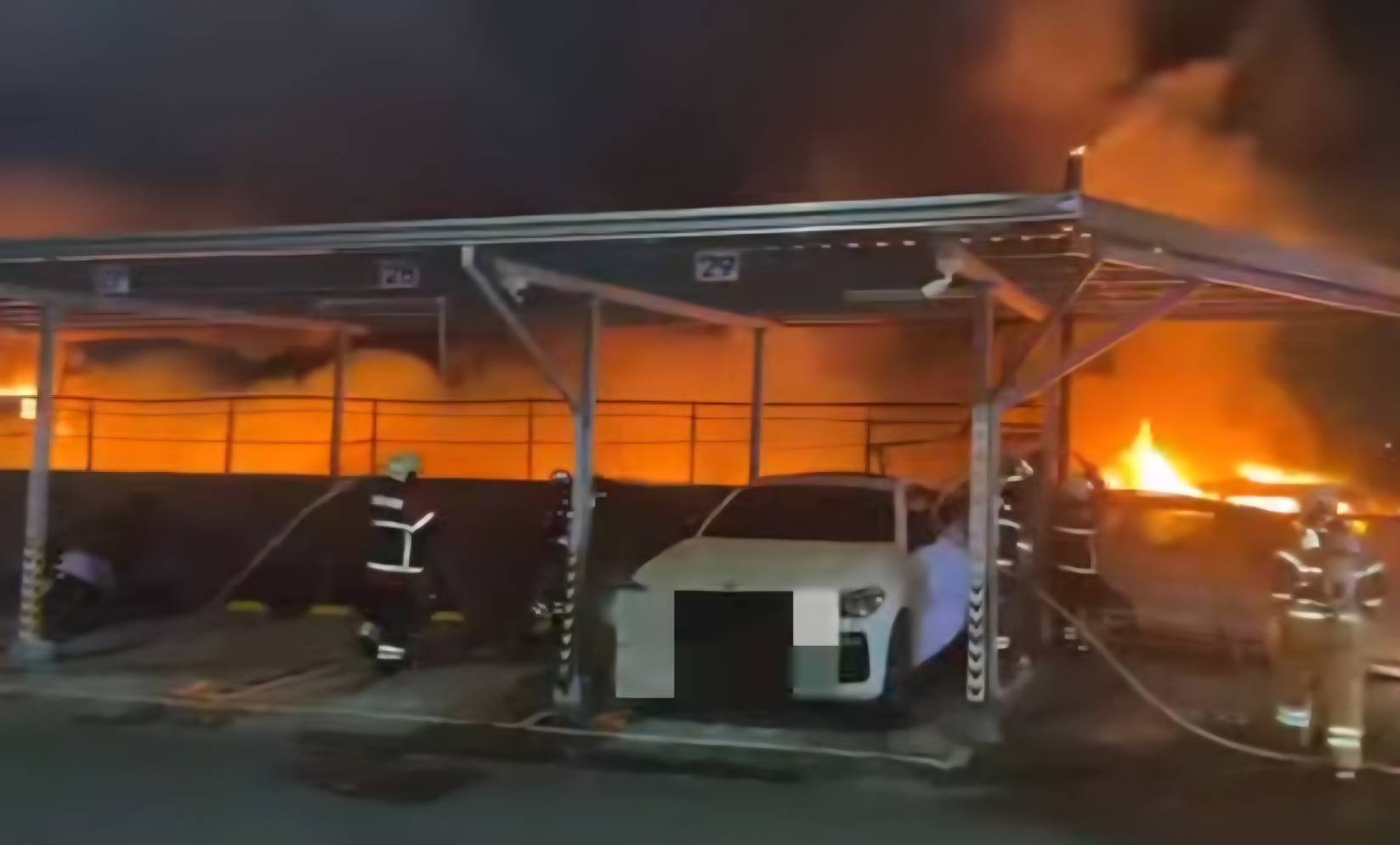 160輛汽車、200輛機車陷入火海,烈焰沖天、火場濃煙密布,火災場面相當驚人。