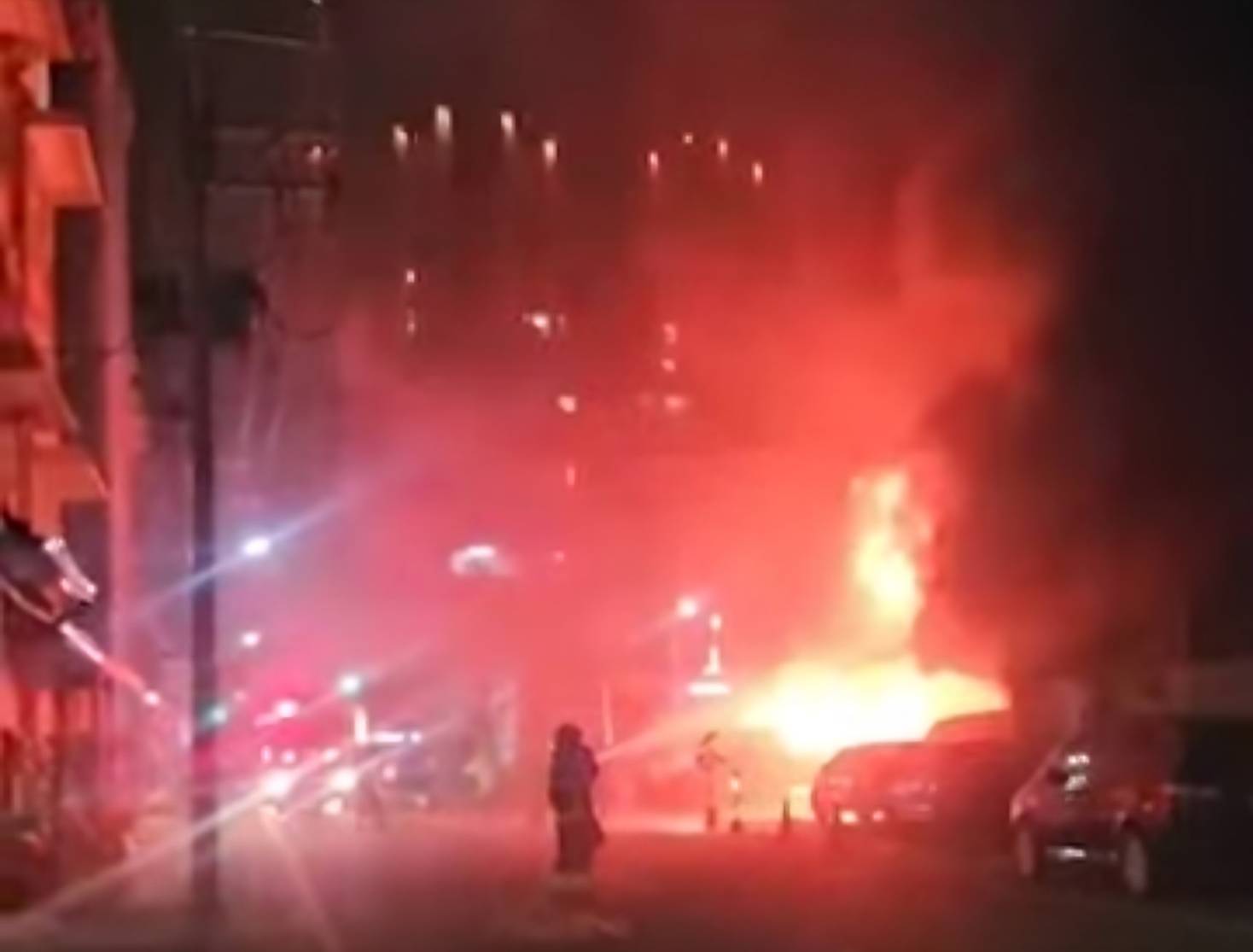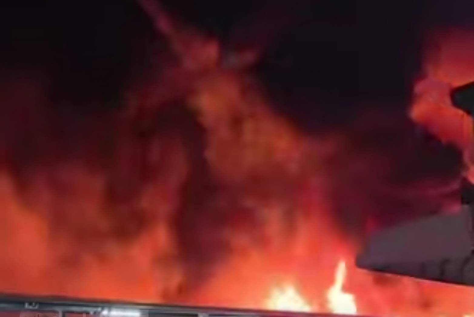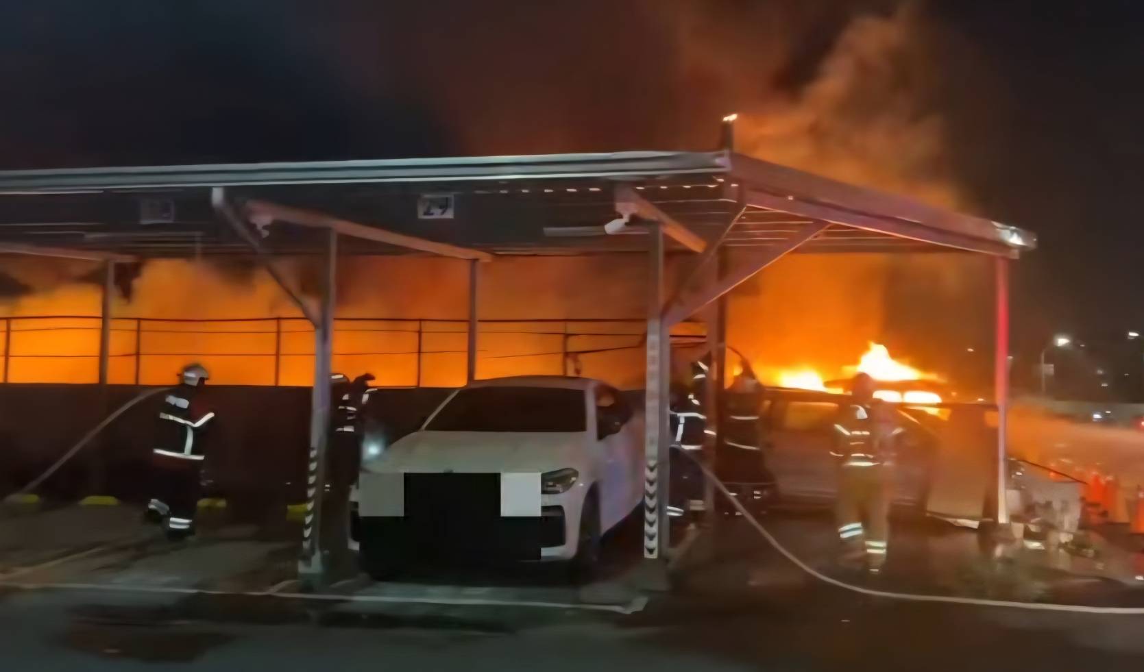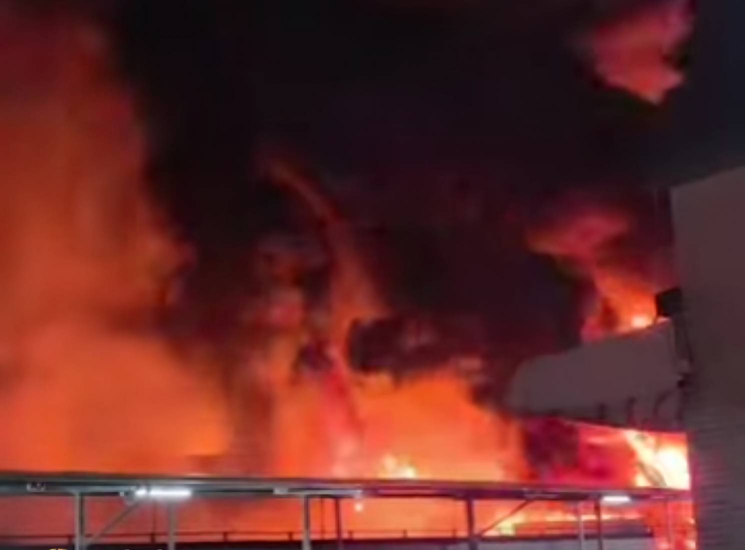 160輛汽車、200輛機車陷入火海,烈焰沖天、火場濃煙密布,火災場面相當驚人。